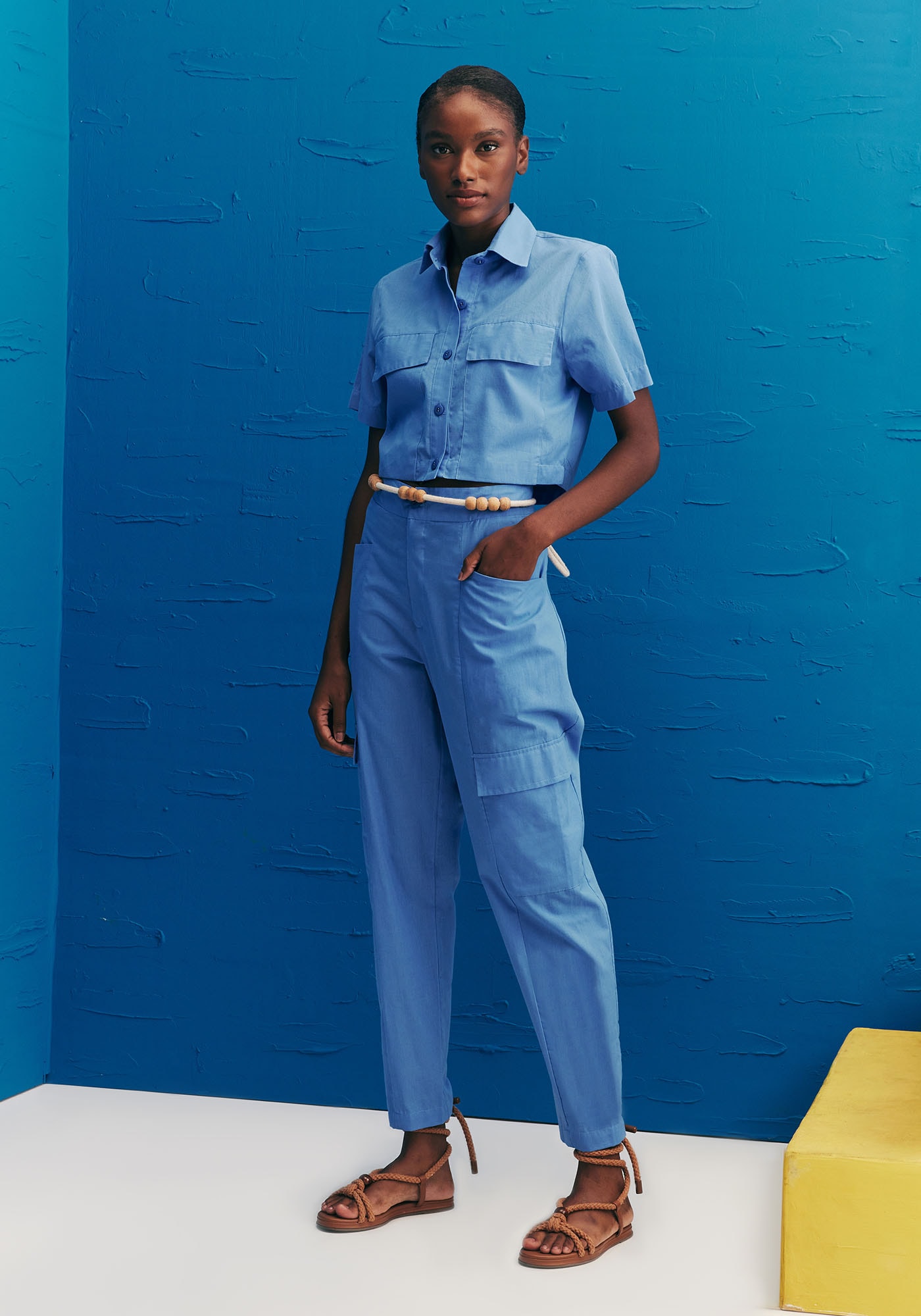 Moderna e funcional, a CalçaCenoura Utilitária oferece praticidade e estilo para o seu dia a dia. Comdesign contemporâneo, sua modelagem levemente afunilada nas pernas proporcionaconforto e um caimento sofisticado. Os bolsos utilitários na parte frontal queadicionam funcionalidade e um toque despojado, tornando-a ideal para comporlooks que oferecem versatilidade sem abrir mão do estilo. É confeccionada em100% Algodão.
