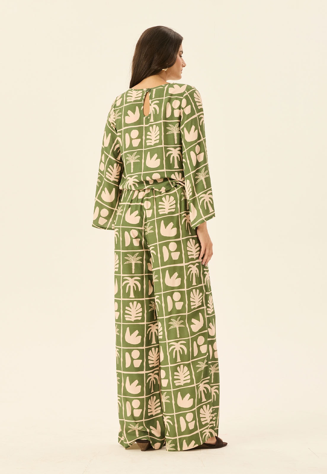 A Calça Eslástico Cós Estampada Ybyra da CaCay é a escolha ideal para quem busca leveza, estilo e versatilidade em uma única peça. Confeccionada em 100% viscose, ela oferece um toque suave e caimento fluido, valorizando o movimento natural do corpo. O cós elástico com cordão ajustável garante conforto e praticidade, enquanto o corte reto e solto favorece diferentes silhuetas. A estampa geométrica com elementos gráficos e botânicos adiciona personalidade sem exageros, tornando a peça perfeita para compor looks casuais ou sofisticados com facilidade.