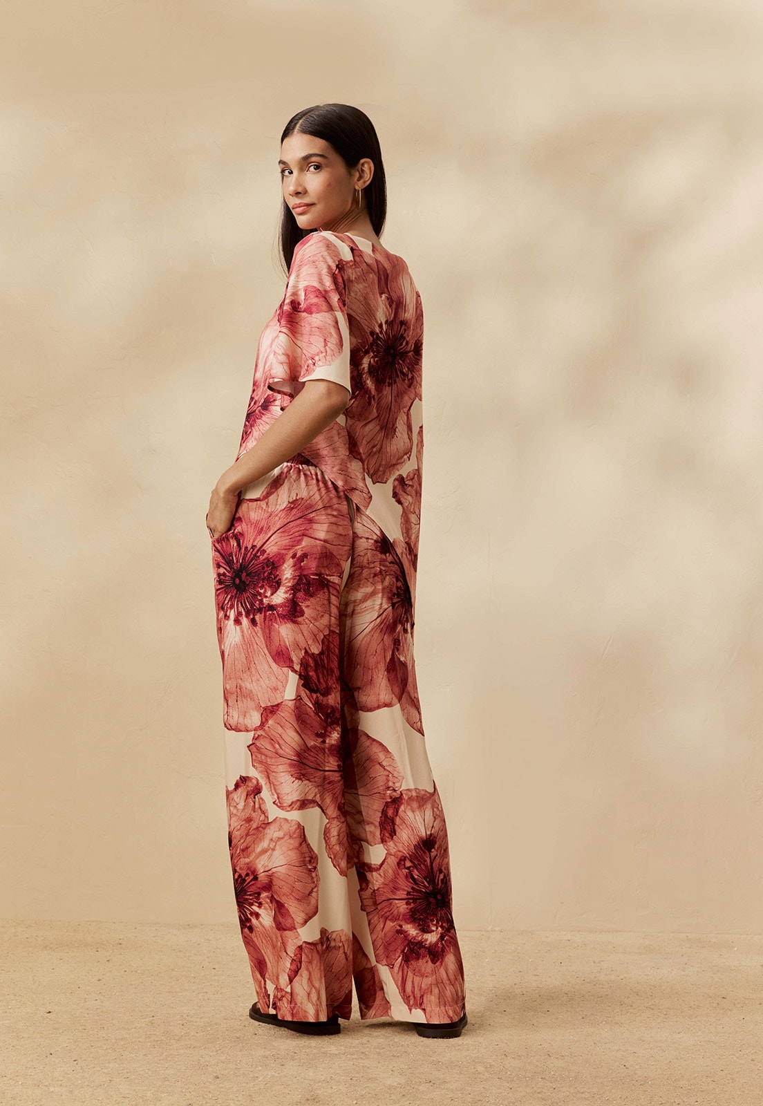 A Calça Estampada Ancocha da CaCay tem modelagem ampla e confortável, com caimento solto no quadril e pernas retas que garantem movimento fluido. O cós com elástico nas costas proporciona ajuste prático sem perder a elegância, enquanto os bolsos adicionam funcionalidade ao dia a dia. A forma é grande, então se estiver em dúvida entre dois tamanhos, opte pelo menor e consulte a tabela de medidas para precisão. Na foto, a modelo tem 1,75m, veste manequim 36 e usa o tamanho P.Confeccionada em 100% viscose, a peça não possui elasticidade, mas oferece toque leve e frescor para uso prolongado com bem-estar. Versátil, transita entre ocasiões casuais, trabalho ou encontros descontraídos, mantendo estilo atemporal. A estampa floral é o detalhe que traz personalidade e sofisticação. Combine com blusas neutras, acessórios delicados ou sandálias para criar produções que equilibram conforto e elegância.