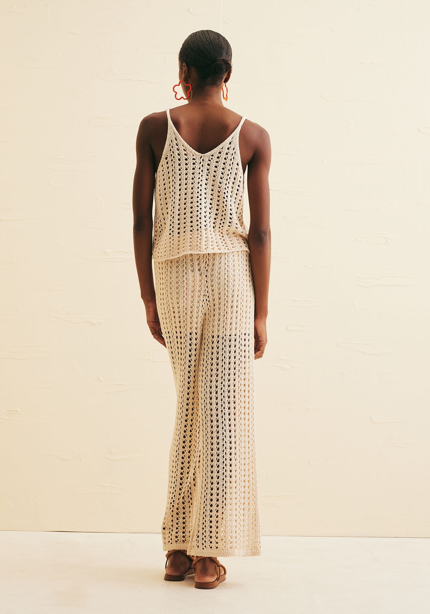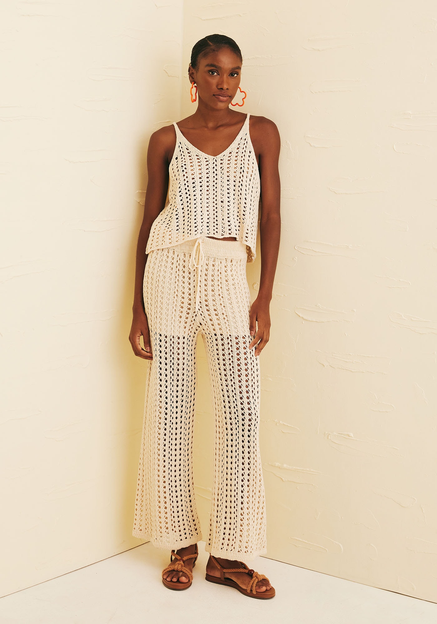 ACalça Estilo Crochê Tricot é um modelo deslumbrante e único, ideal para quembusca um visual sofisticado e estiloso para o verão. Com sua trama vazada ofereceleveza, conforto e frescor além de apresentar um caimento fluido que trazmovimento para o seu look. A pala na cintura ajustável com cordão garante umajuste personalizado. Essa peça em tricot se destaca pela textura única e éperfeita para um visual despojado.