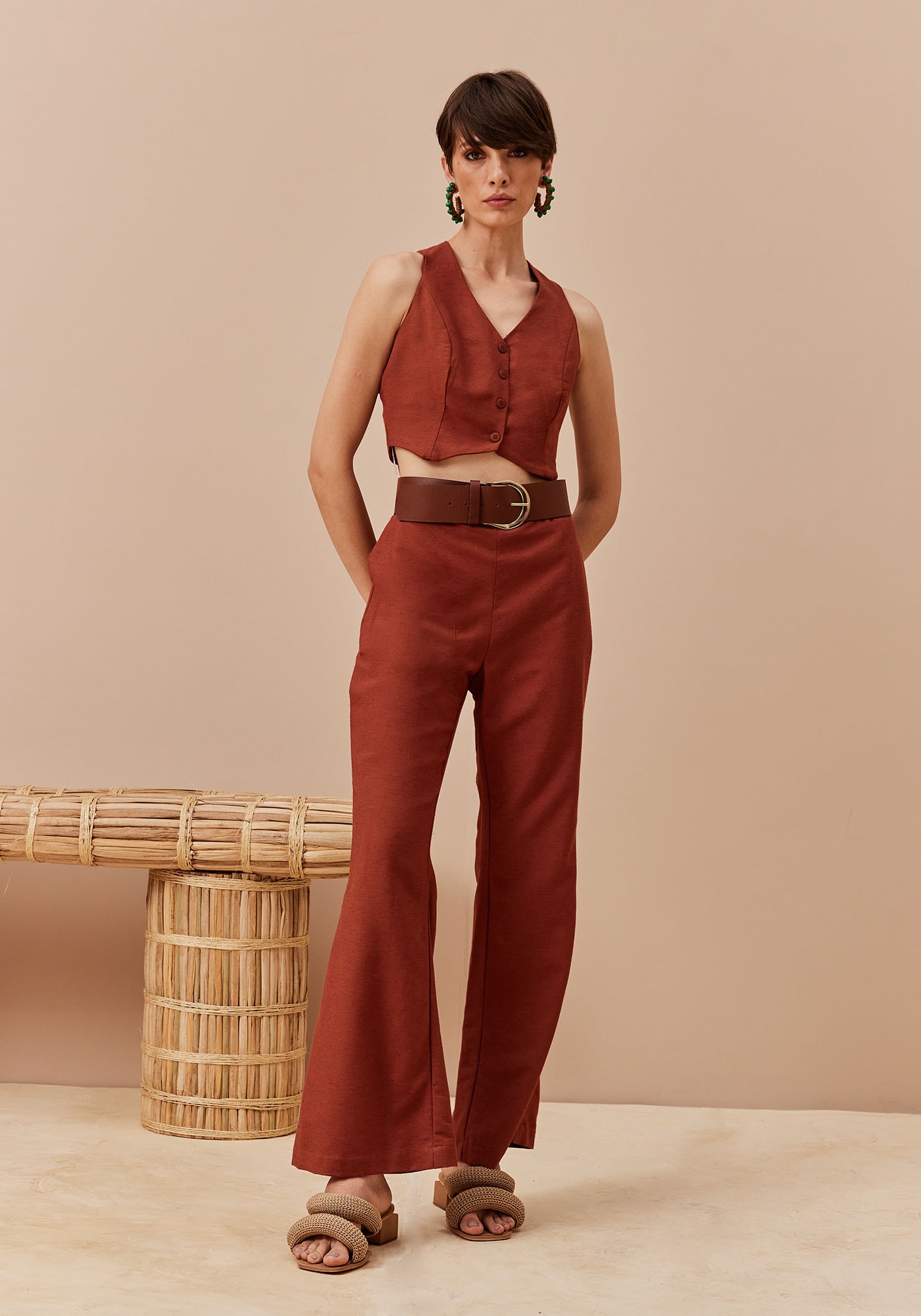 A Calça Flare é confeccionada em 42% Algodão 38% Viscose, 15% Modal e 6% Linho, e é a escolha perfeita para quem busca conforto e estilo. A modelagem flare confere um toque de elegância, com um corte que se abre suavemente a partir do joelho, garantindo liberdade de movimento e um visual moderno. O zíper na parte das costas proporciona um ajuste perfeito, enquanto os bolsos frontais adicionam praticidade e um charme extra à peça. Ideal para diversas ocasiões, combina bem estilos e pode ser usada tanto no dia a dia quanto em eventos casuais.