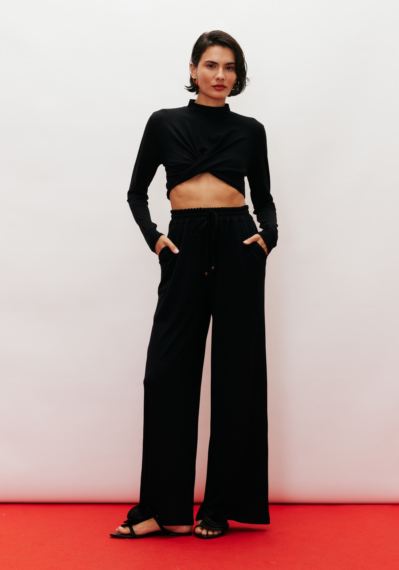 A calça pantalona é uma peçaconfortável e estilosa. Confeccionada em malha, 96% viscose 4% elastano, possuipala com elástico e amarração em túnel. Os bolsos laterais dão mais praticidade.