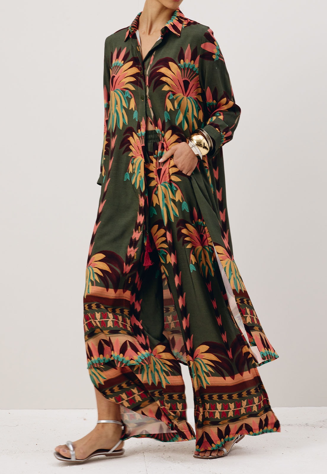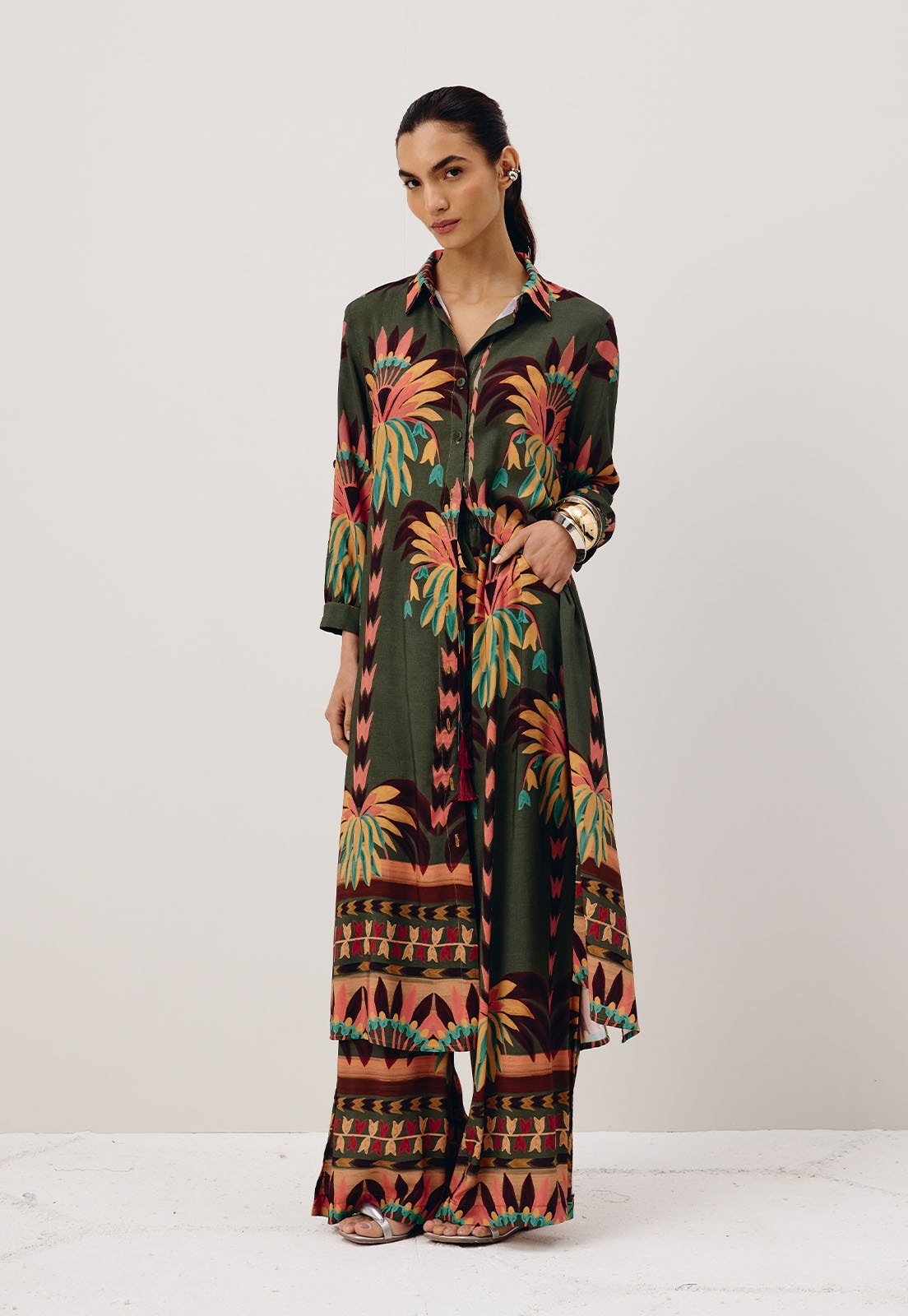Conforto e elegância definem a Calça Pantalona Ampla. Com pala de elástico na cintura, ela se ajusta de forma confortável ao corpo, enquanto a amarração frontal com acabamento em ponteiras adiciona um toque de charme e sofisticação. O corte amplo traz fluidez e movimento, criando uma silhueta alongada e moderna. Confeccionada em 100% viscose, a peça oferece leveza e suavidade, perfeita para composições que pedem estilo sem abrir mão do conforto.