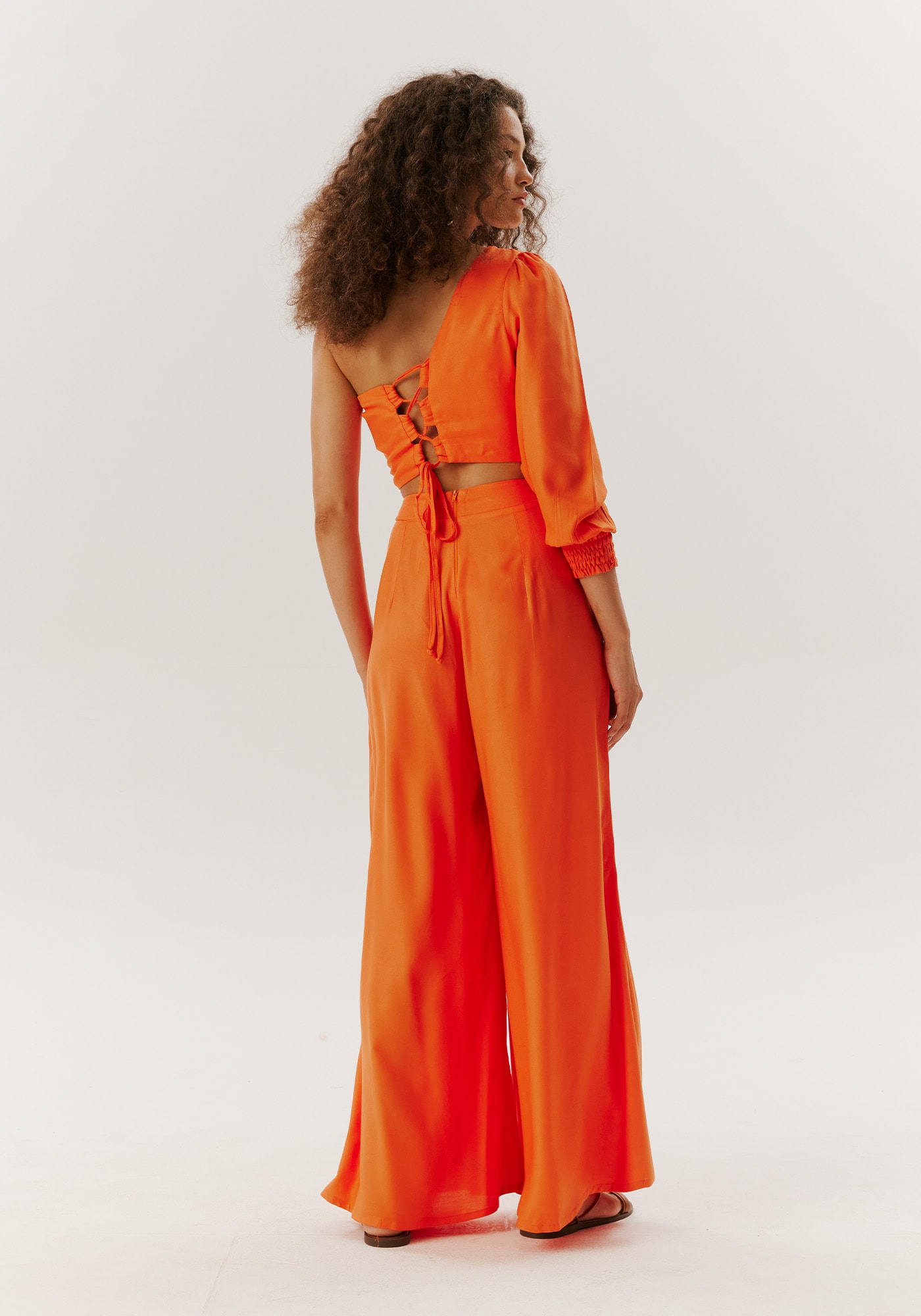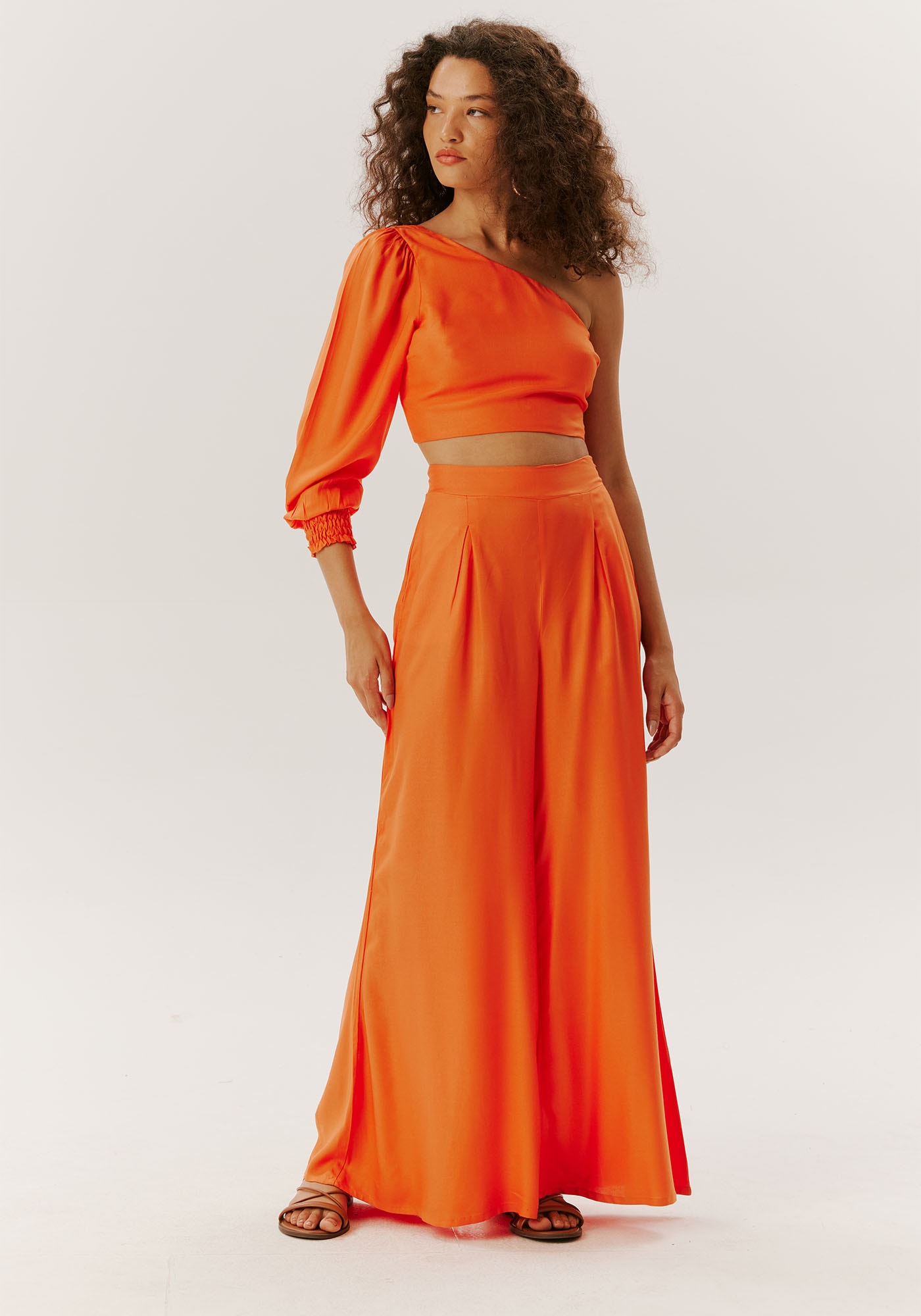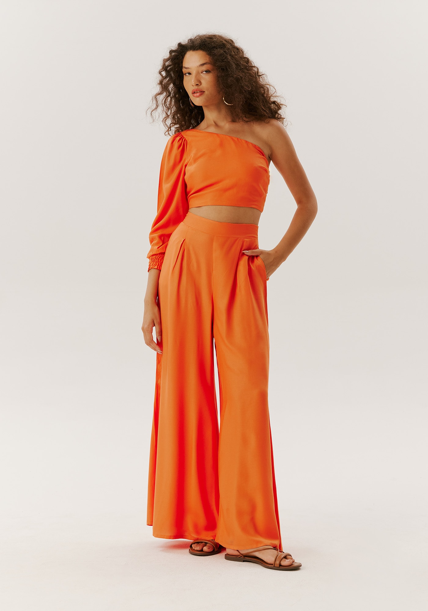 Elegante e ideal para diversasocasiões, esta pantalona feita em viscose sarjada apresenta comprimento longo,cós alto e shape solto. As pregas frontais trazem um charme a peça. O seufechamento se dá através de um zíper na parte posterior. Aproveite paracombinar com outras peças da coleção.