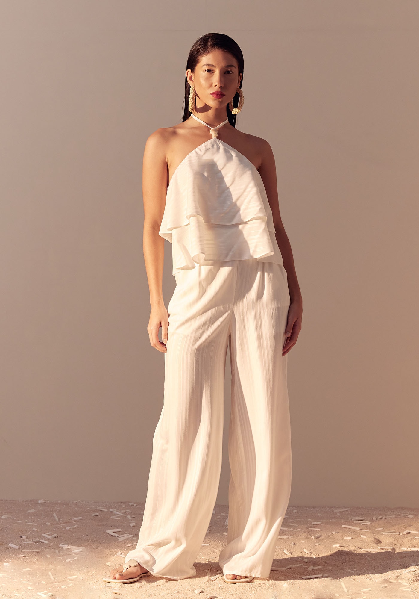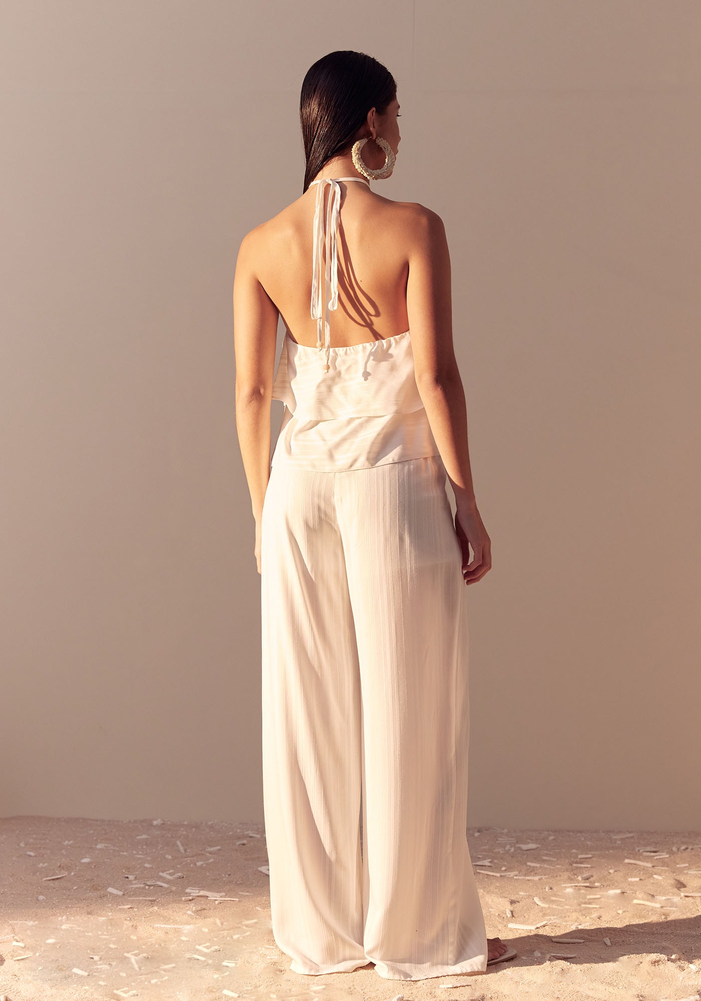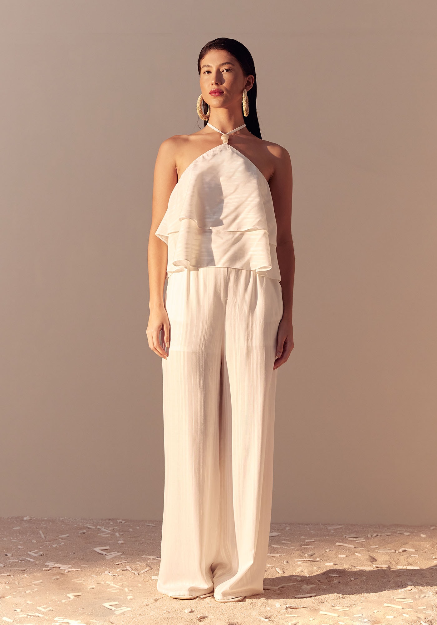 Esta Calça Pantalona é confeccionada em 100% viscose, é uma peça chave em todoguarda-roupa e se destaca pela sofisticação e versatilidade. Apresenta pala nacintura e pregas na parte frontal. O design amplo permite um movimento eleganteenquanto seus bolsos adicionam mais funcionalidade à peça. Seu fechamento é atravésde zíper invisível na parte das costas. É ideal tanto para ocasiões mais formaisquanto mais casuais.