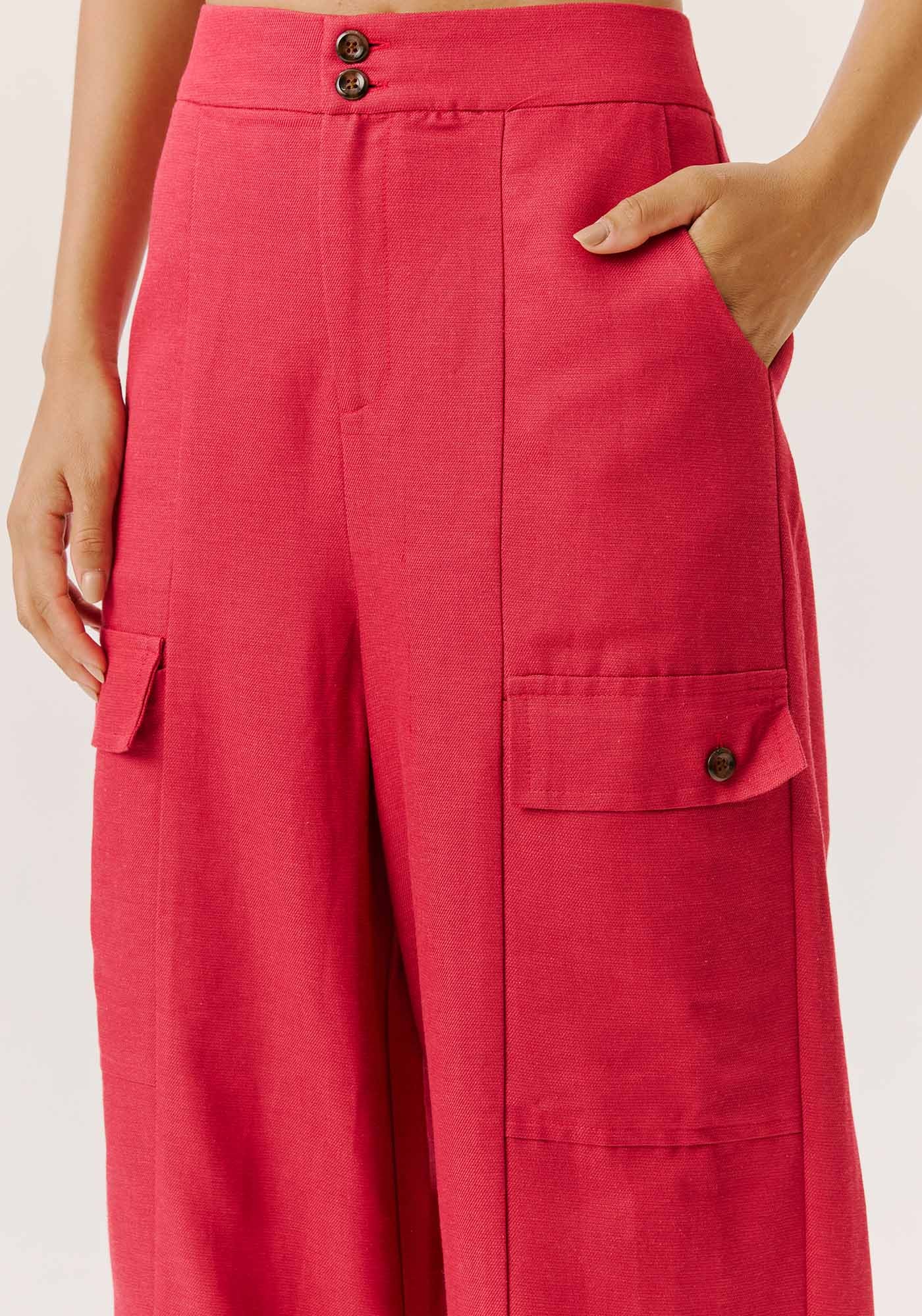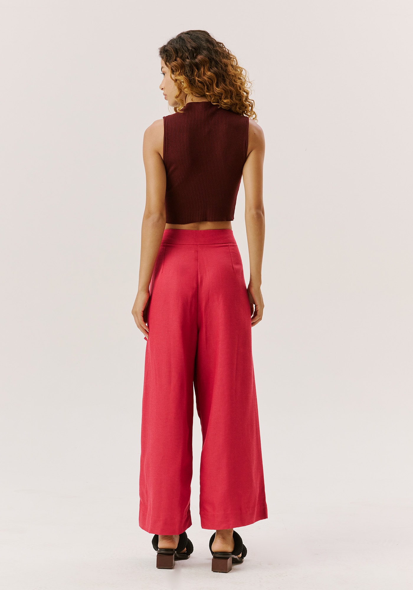 A calça cropped mistura o clássico e o moderno. Confeccionada em tecido 50% algodão 29% viscose15% modal e 6% linho, a peça cintura alta é modelo pantalona cropped e possuifechamento com abotoamento e zíper na parte da frente. Além disso, contém bolsos em facanas laterais e nas pernas, deixando o modelo prático. As aletas na barra dão umtoque charmoso para peça, combinando com os botões tartaruga do restante dapeça.