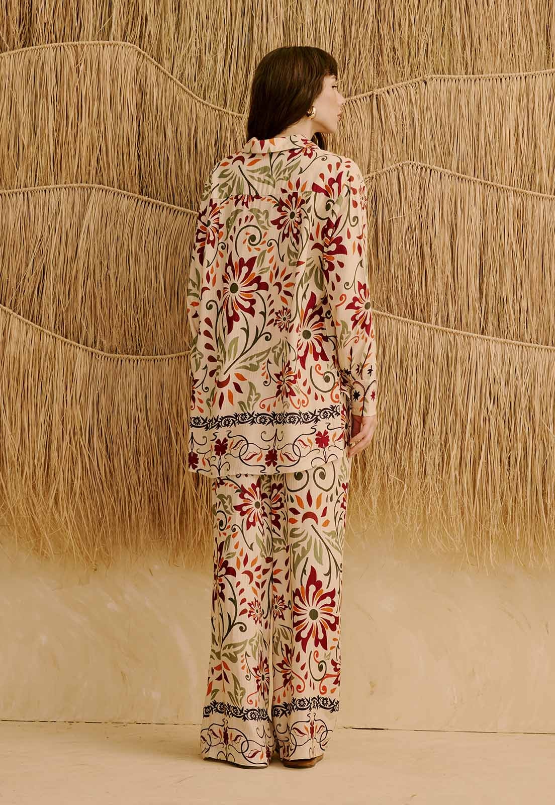 O tecido 100% viscose é leve e sem elasticidade, ideal para uso prolongado com sensação de frescor. Versátil e atemporal, a pantalona transita bem entre ocasiões casuais, trabalho ou momentos de lazer, trazendo sofisticação sem esforço. A estampa com elementos naturais reforça o estilo descontraído e elegante, perfeita para compor looks com blusas leves, camisas fluidas ou acessórios como colares e bolsas estruturadas. Combine com sandálias ou rasteiras para um visual que respira leveza.