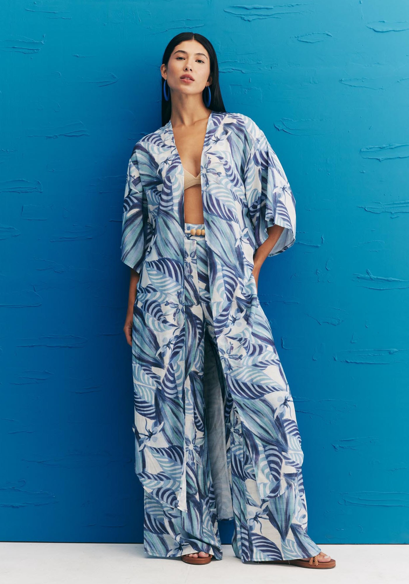 Confeccionada em tecido 97% viscose e 3% linho, a calça pantalona jávirou uma peça clássica, que veste super bem. O modelo possui pala na cintura elastex na parte de trás, proporcionando uma melhor vestibilidade eadaptabilidade ao corpo. As fendas laterais dão movimento à peça.