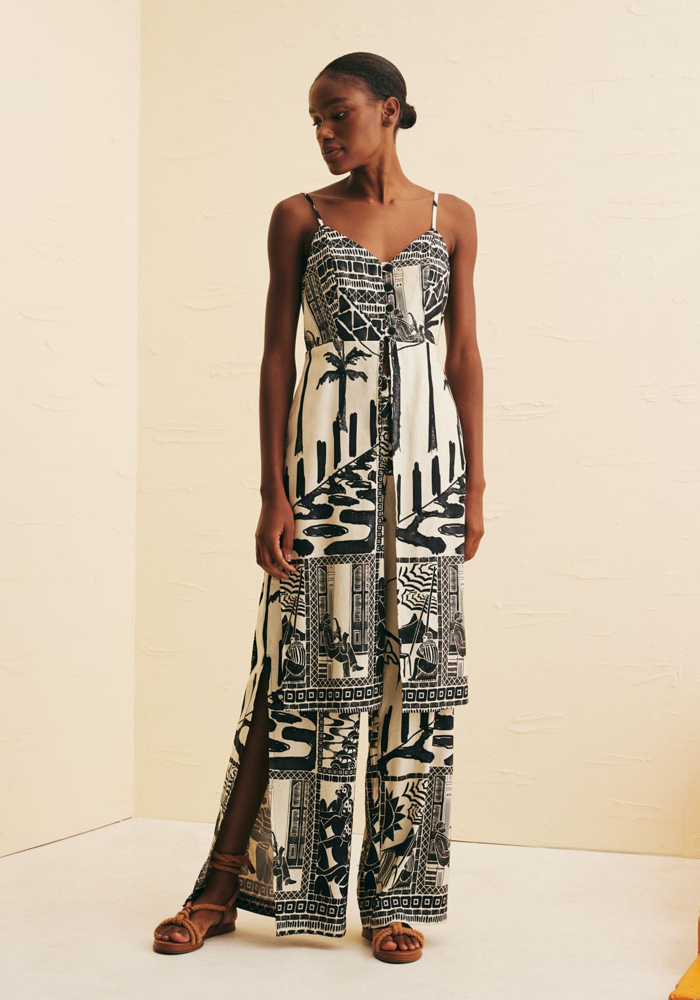 Confeccionada em tecido 50% algodão 29%viscose 15% modal 6% linho, a calça pantalona é um modelo que combinasofisticação e versatilidade. A peça com modelagem pantalona possui o shapemais amplo e confortável. As fendas laterais adicionam movimento e leveza paraa calça.