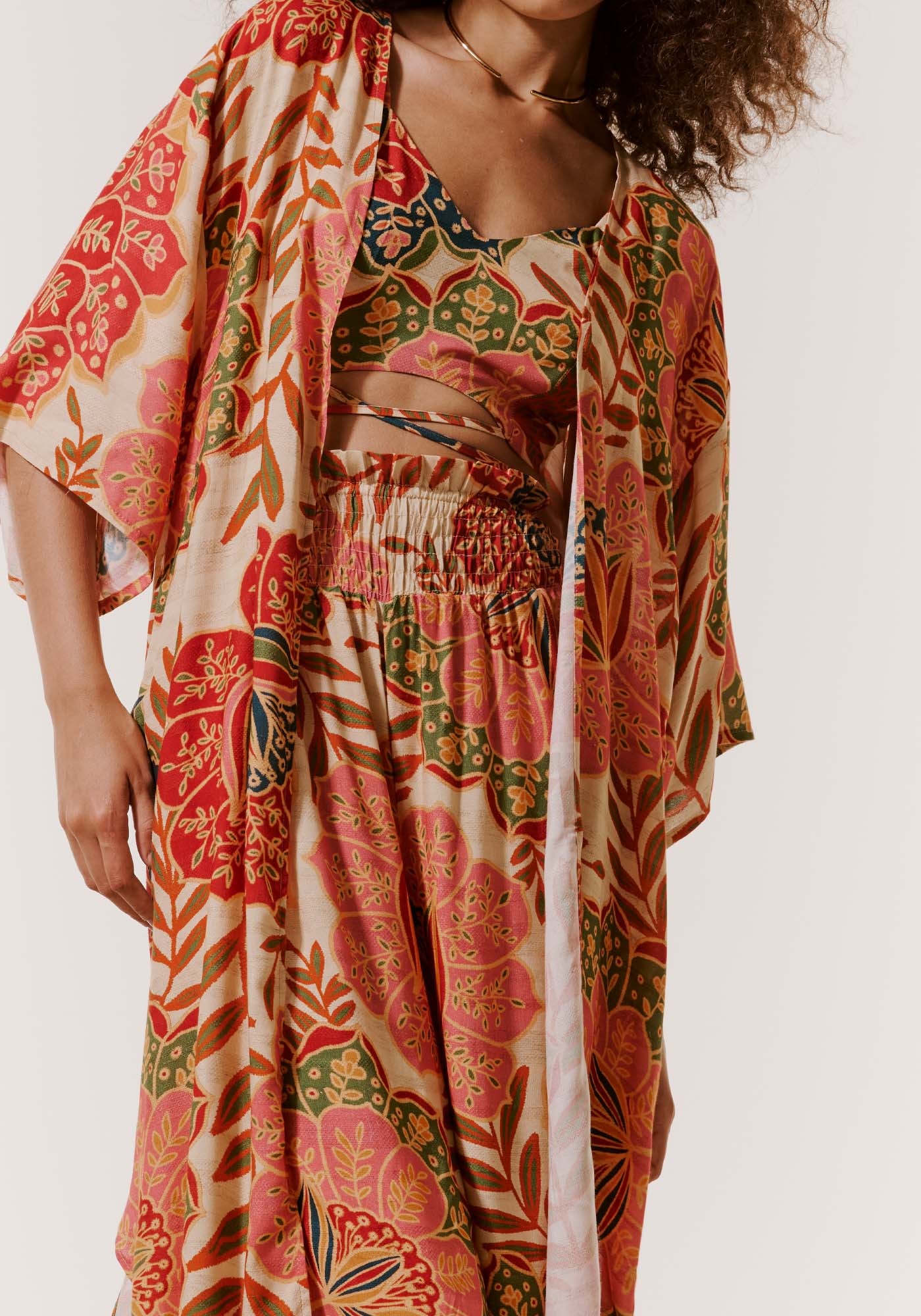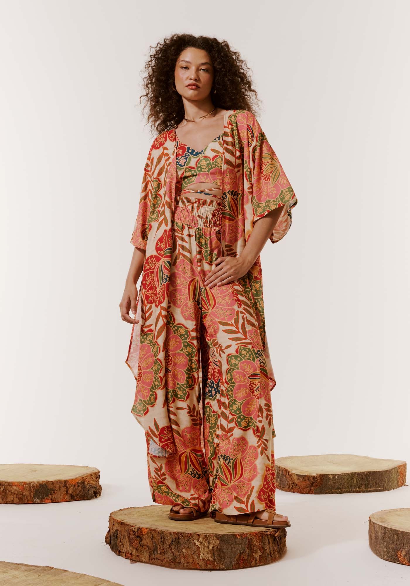 Confeccionada em 97% viscose3% linho, a calça pantalona é um modelo que possui lastex na cintura, trazendomais conforto. A boca mais ampla dá mais movimento e fluidez à peça.