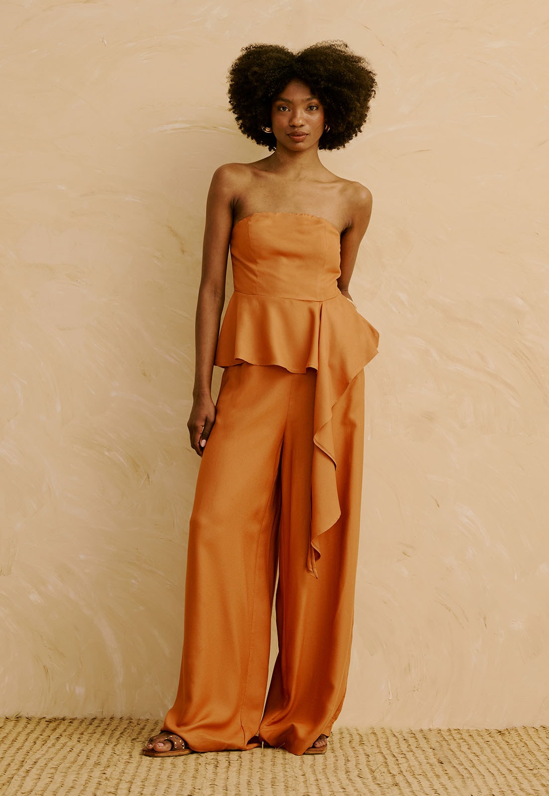 A Calça Pantalona Lisa da CaCay tem modelagem ampla e elegante, com caimento fluido que valoriza a silhueta sem marcar. A cintura é levemente ajustada e o comprimento alongado traz sofisticação ao visual. A forma é grande. Caso esteja em dúvida entre dois tamanhos, indicamos escolher o menor. A tabela de medidas pode ajudar na decisão. A modelo da foto tem 1,75m, veste manequim 36 e está usando o tamanho P.