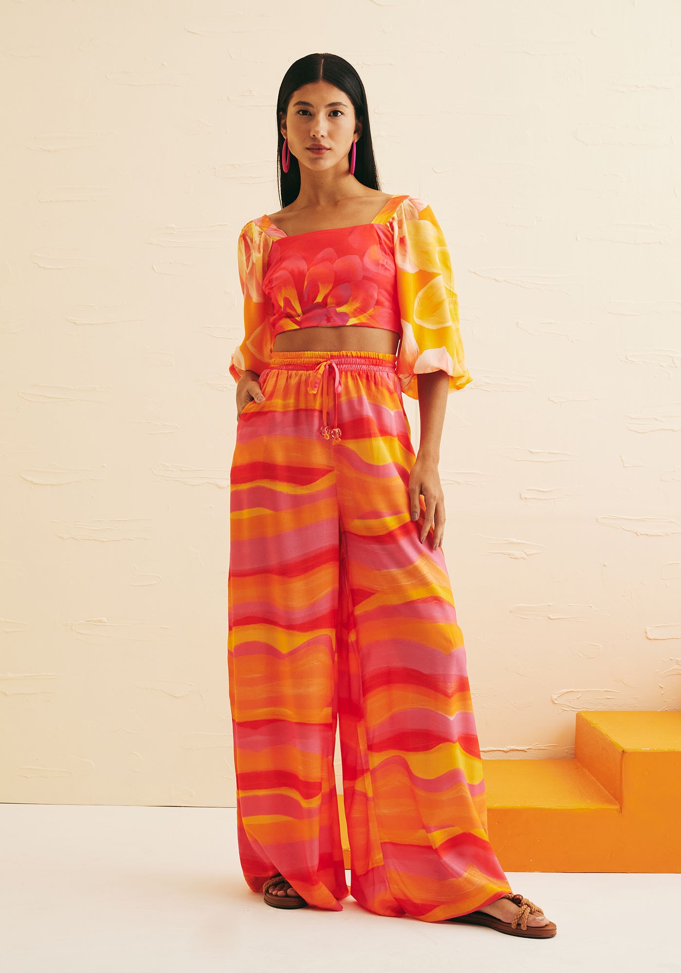 A calça pantalona é sinônimo de conforto eestilo. Confeccionada em tecido 100% viscose, a peça modelo pantalona possui fluideze movimento. A calça possui lastex na cintura e amarração finalizada componteira. Os bolsos laterais deixam a peça mais prática.