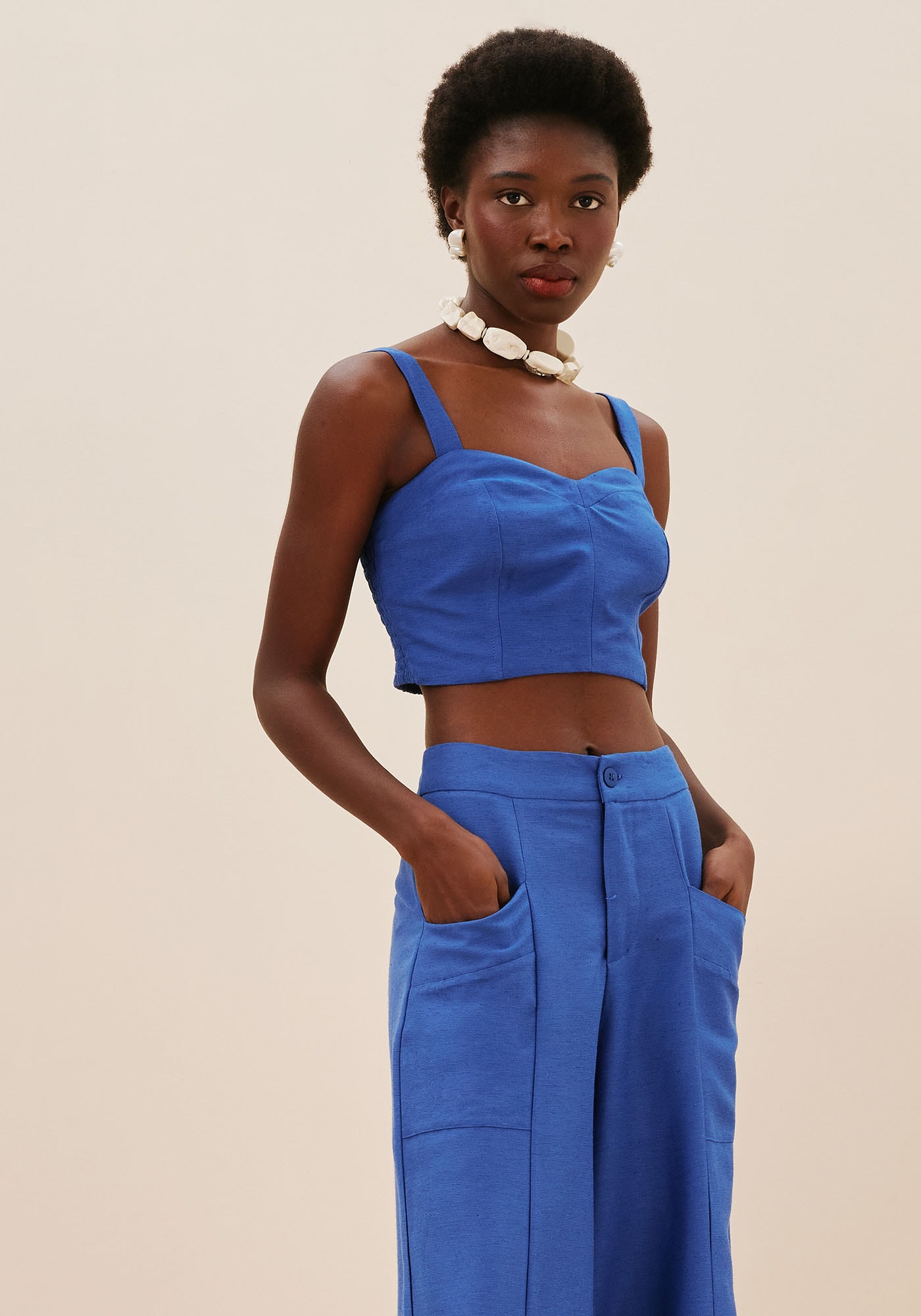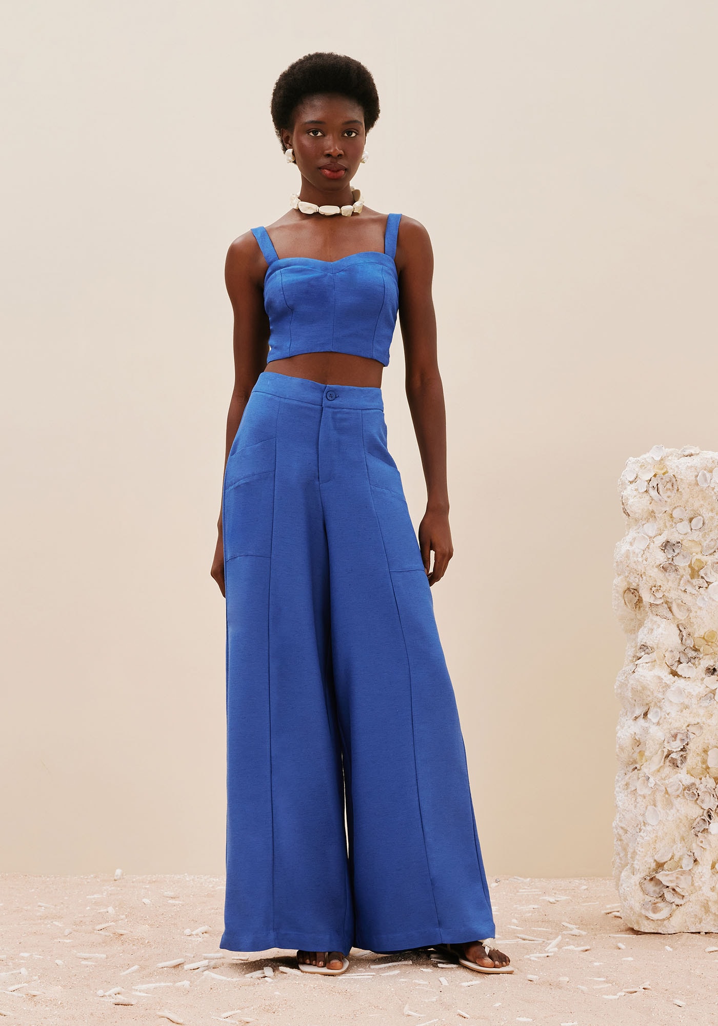 Com design moderno que apresentarecortes frontais, esta Calça Pantalona possui uma modelagem ampla que adicionaestilo e sofisticação ao seu visual. Apresenta pala na cintura com abotoamentofrontal que valoriza e destaca a silhueta, e o design dos seus bolsos frontaisalém de trazer um detalhe diferenciado traz funcionalidade e praticidade. Suacomposição é de 97% Viscose 3% Linho.