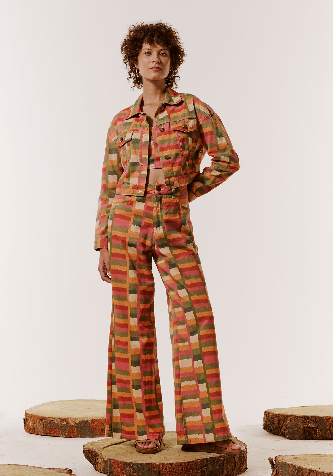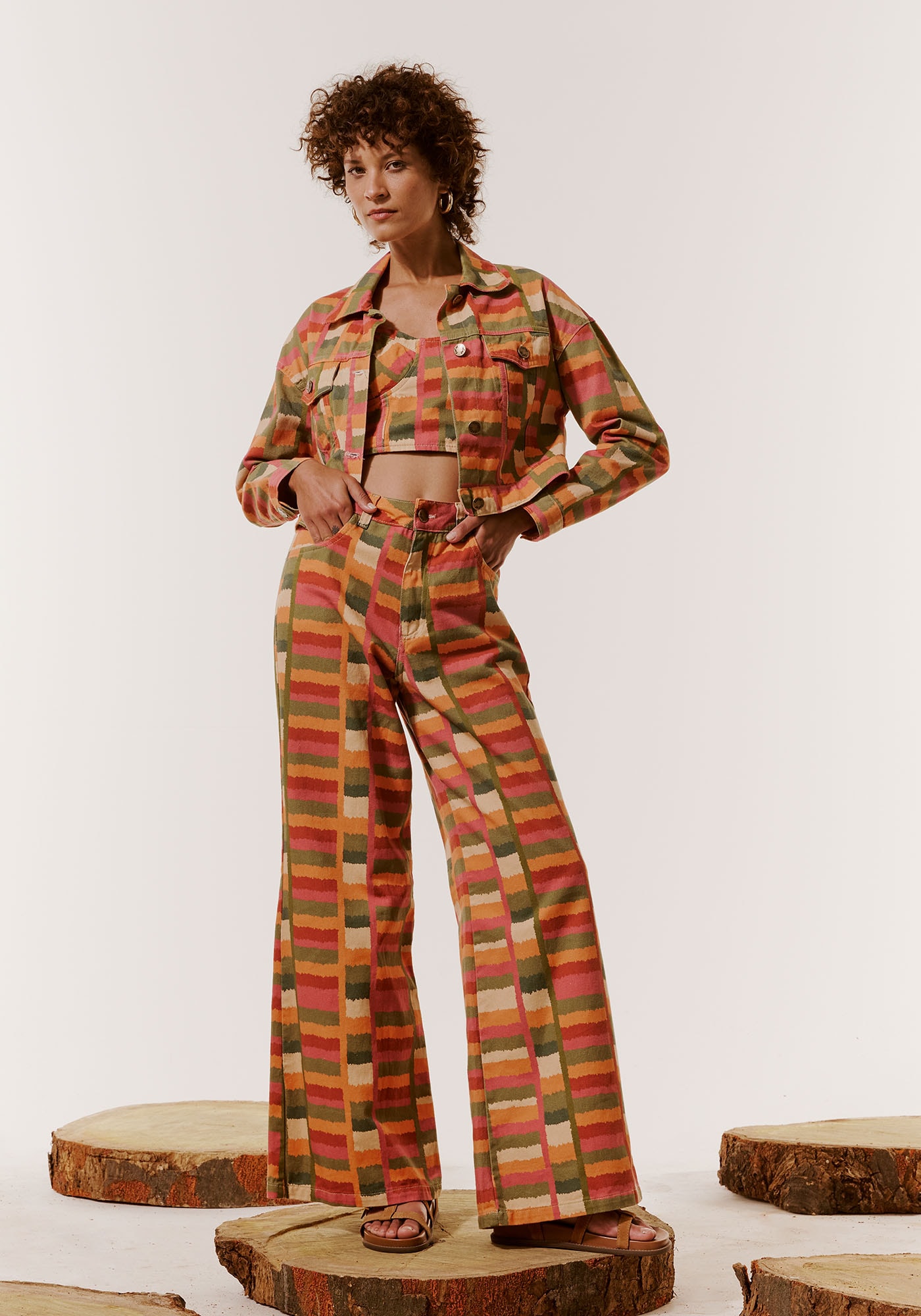 Explore um estilo divertido evibrante com a nossa Calça Pantalona Sarja Estampada Ciranda. Esta peça ofereceum caimento elegante e confortável com a amplitude pantalona, proporcionandoliberdade de movimento e também sofisticação. Sua estampa exclusiva Ciranda éúnica e moderna, em tons de verde, rosa e laranja. Confeccionada em sarja, elacombina conforto, elegância e durabilidade.