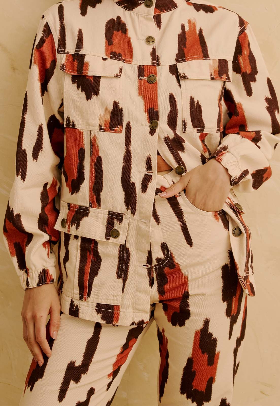 O tecido em sarja garante uso prolongado com bem-estar e conforto. Versátil e atemporal, a calça pode ser usada em contextos casuais, no dia a dia ou até em ambientes de trabalho que valorizam estilo com personalidade. O design estampado traz um toque artístico e moderno, enquanto os bolsos adicionam praticidade. Combine com camisas leves, blazers estruturados ou acessórios marcantes para criar produções que transitam entre o descontraído e o sofisticado.