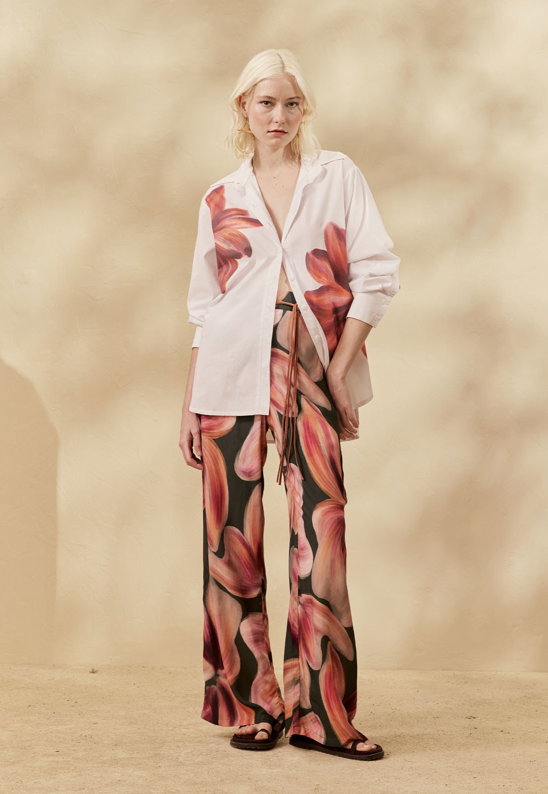 A Calça Reta Estampada Follaje da CaCay tem modelagem reta e elegante, com caimento solto no quadril e comprimento amplo que valoriza o movimento. O cós com elástico na parte de trás garante ajuste confortável na cintura. A forma é grande, então se estiver em dúvida entre dois tamanhos, recomendamos optar pelo menor. A modelo da foto tem 1,75m, veste manequim 36 e está usando o tamanho P.