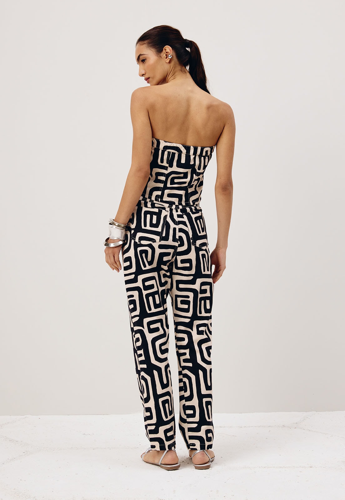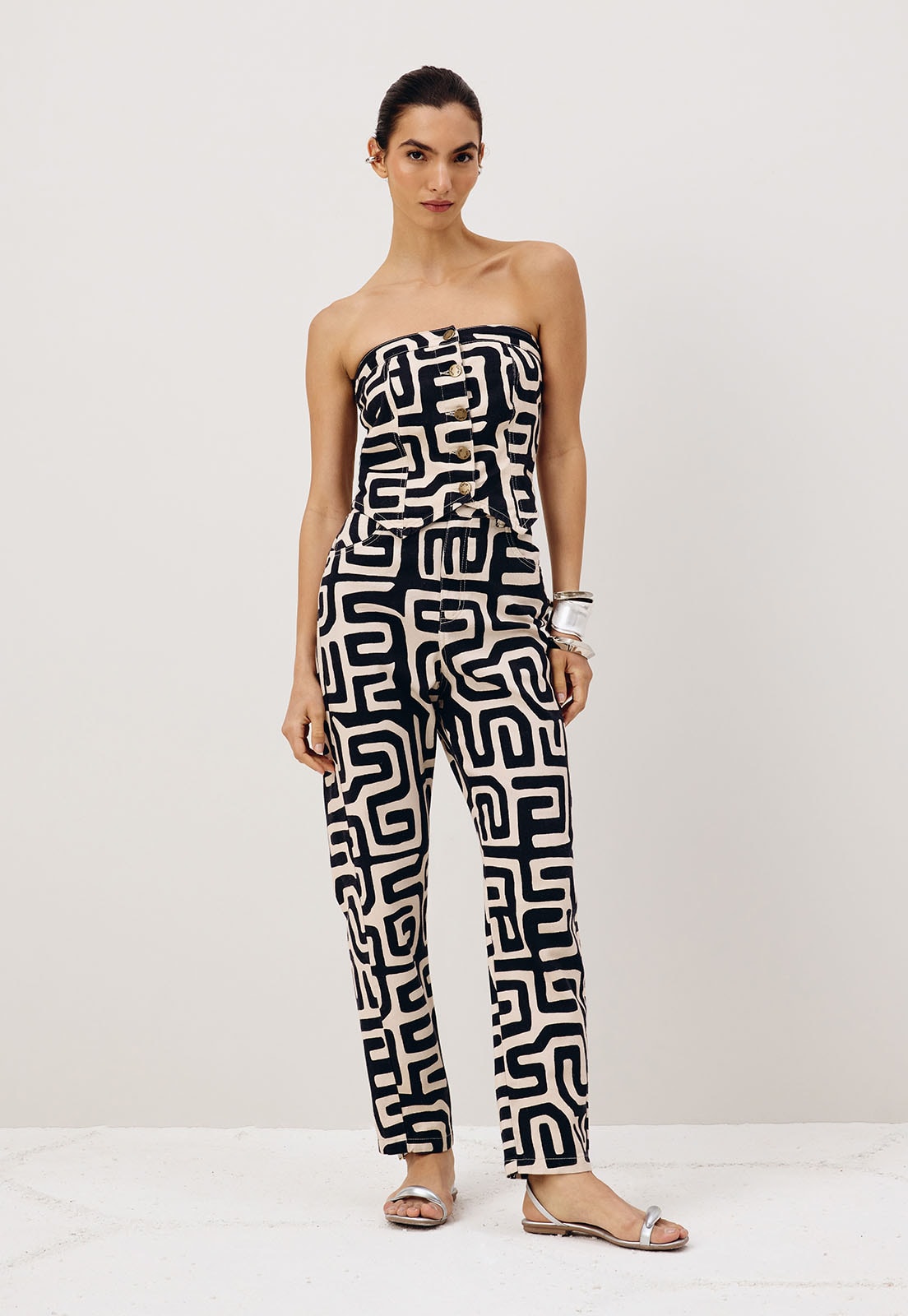 A calça estampada Yala Preto é confeccionada em sarja 100% algodão. É um modelo com shape justo, que valoriza a silhueta. Além disso, possui cós transpassado e bolsos na parte de trás.