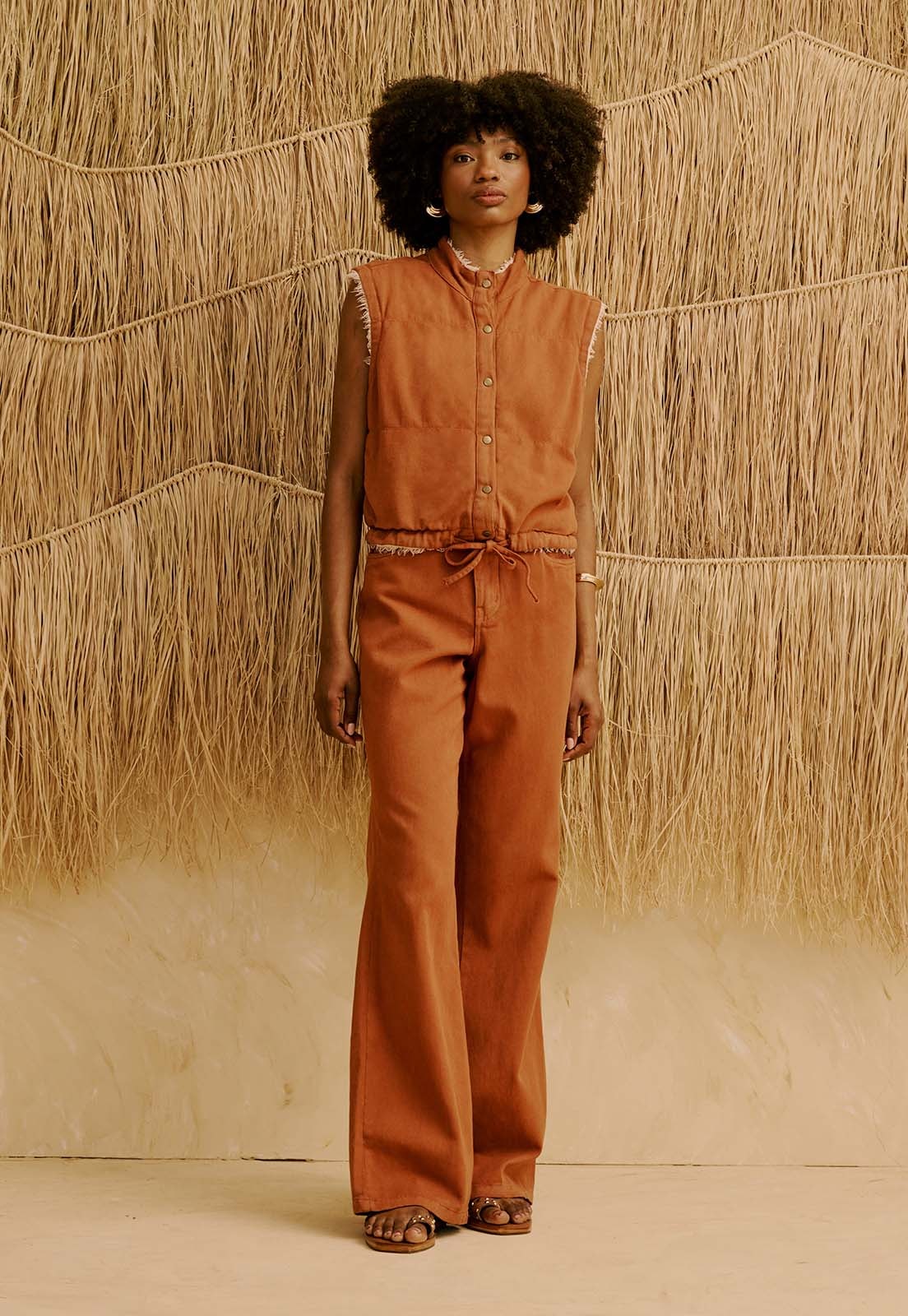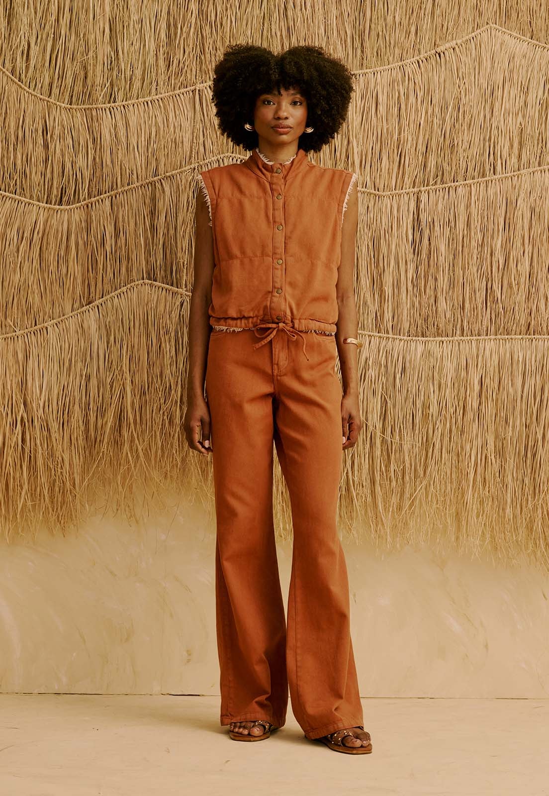 A Calça Sarja Flare Lisa da CaCay tem modelagem estruturada e elegante, com cintura ajustada e caimento que valoriza o quadril sem marcar, enquanto a boca flare alonga a silhueta com sofisticação. Os bolsos funcionais trazem praticidade ao dia a dia. A forma é grande, então se estiver em dúvida entre dois tamanhos, escolha o menor e consulte a tabela de medidas para mais precisão. A modelo da foto tem 1,75m e veste manequim 36.Confeccionada em sarja, a peça garante conforto prolongado e presença marcante em ocasiões casuais, de trabalho ou encontros que pedem estilo versátil. Combine com camisas leves, tops estruturados ou acessórios como cintos e bolsas para criar produções atemporais.