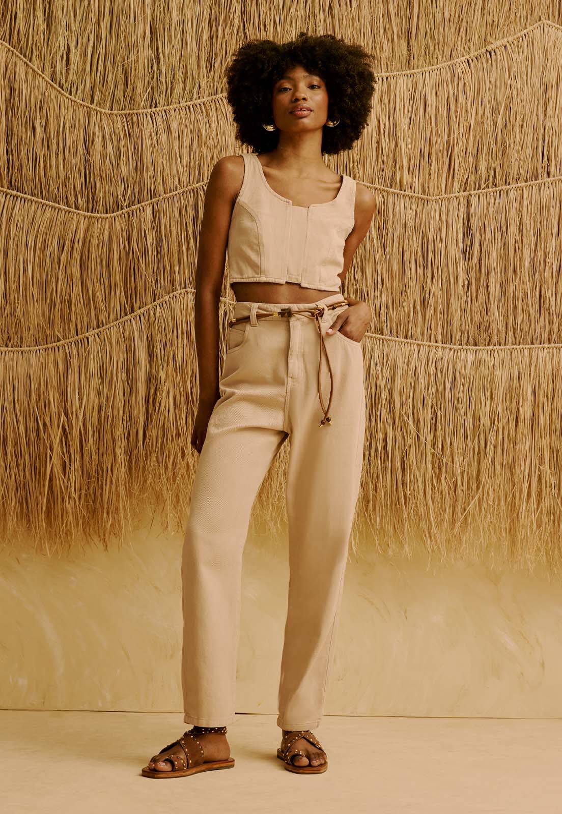 Confeccionada em sarja, a calça proporciona conforto prolongado e estrutura ideal para composições versáteis, seja em momentos casuais, no trabalho ou em encontros descontraídos. Atemporal e elegante, pode ser combinada com blusas leves, camisas ou acessórios que tragam personalidade, como cintos ou bolsas estruturadas. Complete o look com sandálias ou flats.