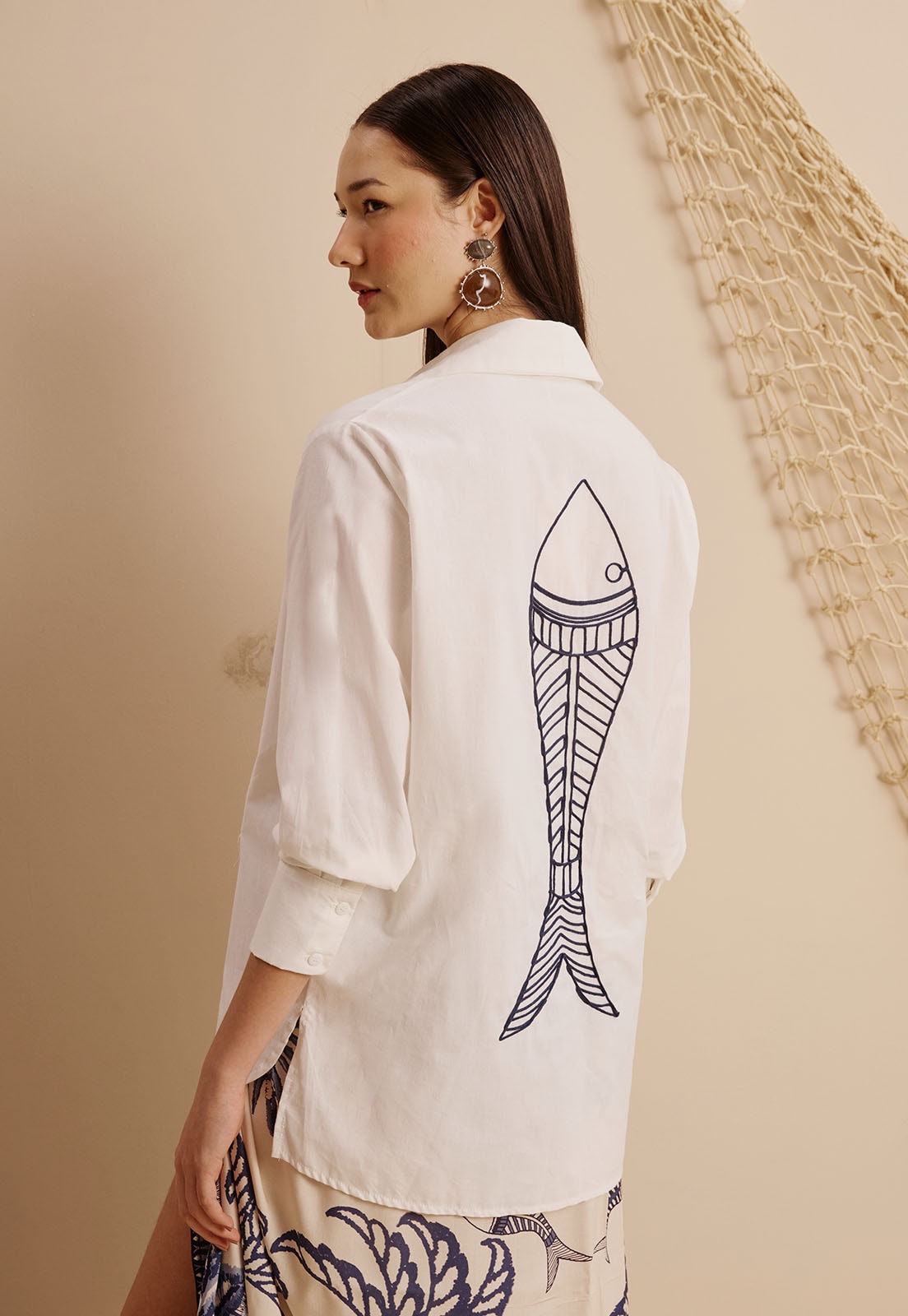 Descubra o equilíbrio entre design e conforto com a Camisa Bordado Peixe da CaCay clique e mergulhe nesse estilo com alma!