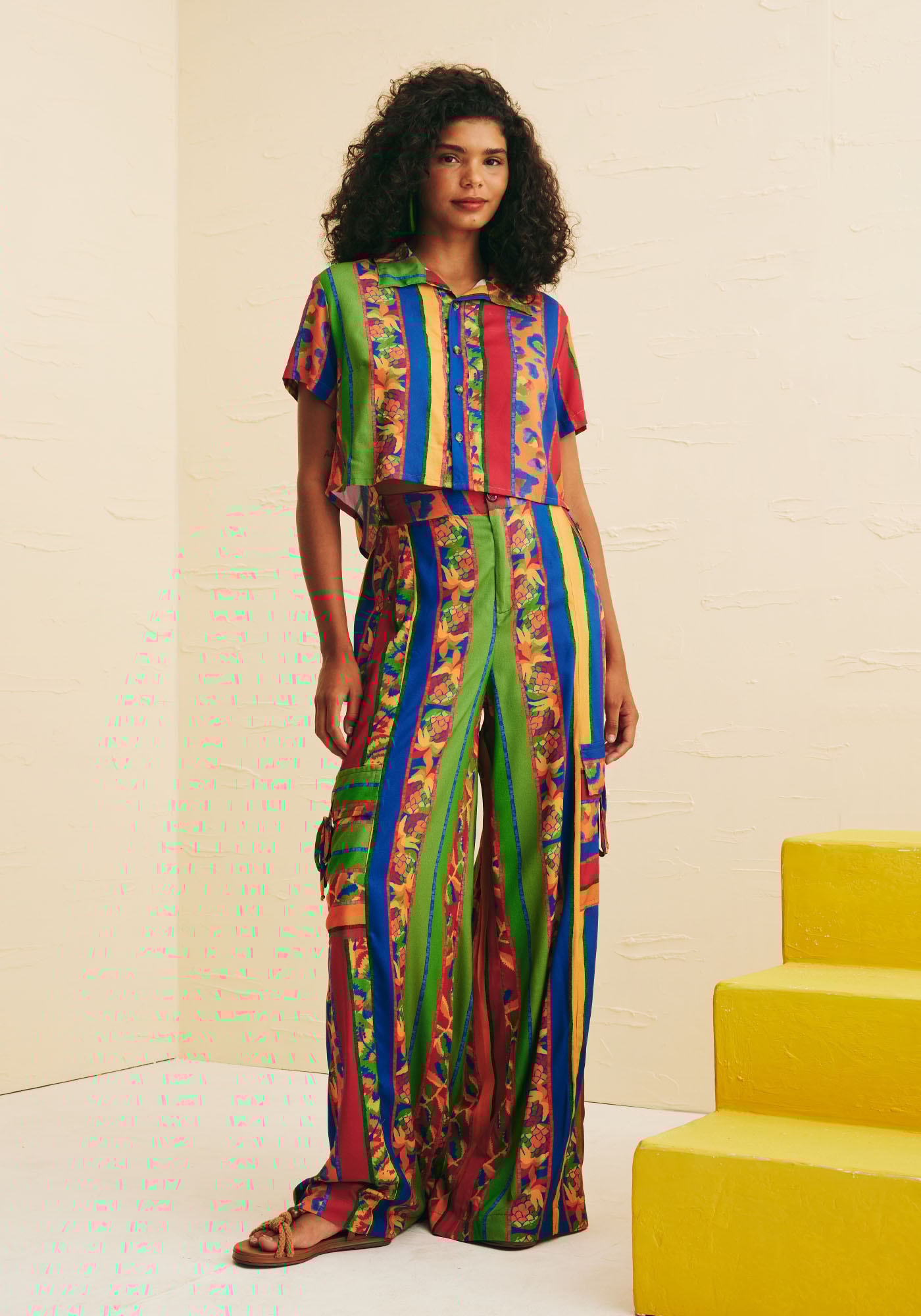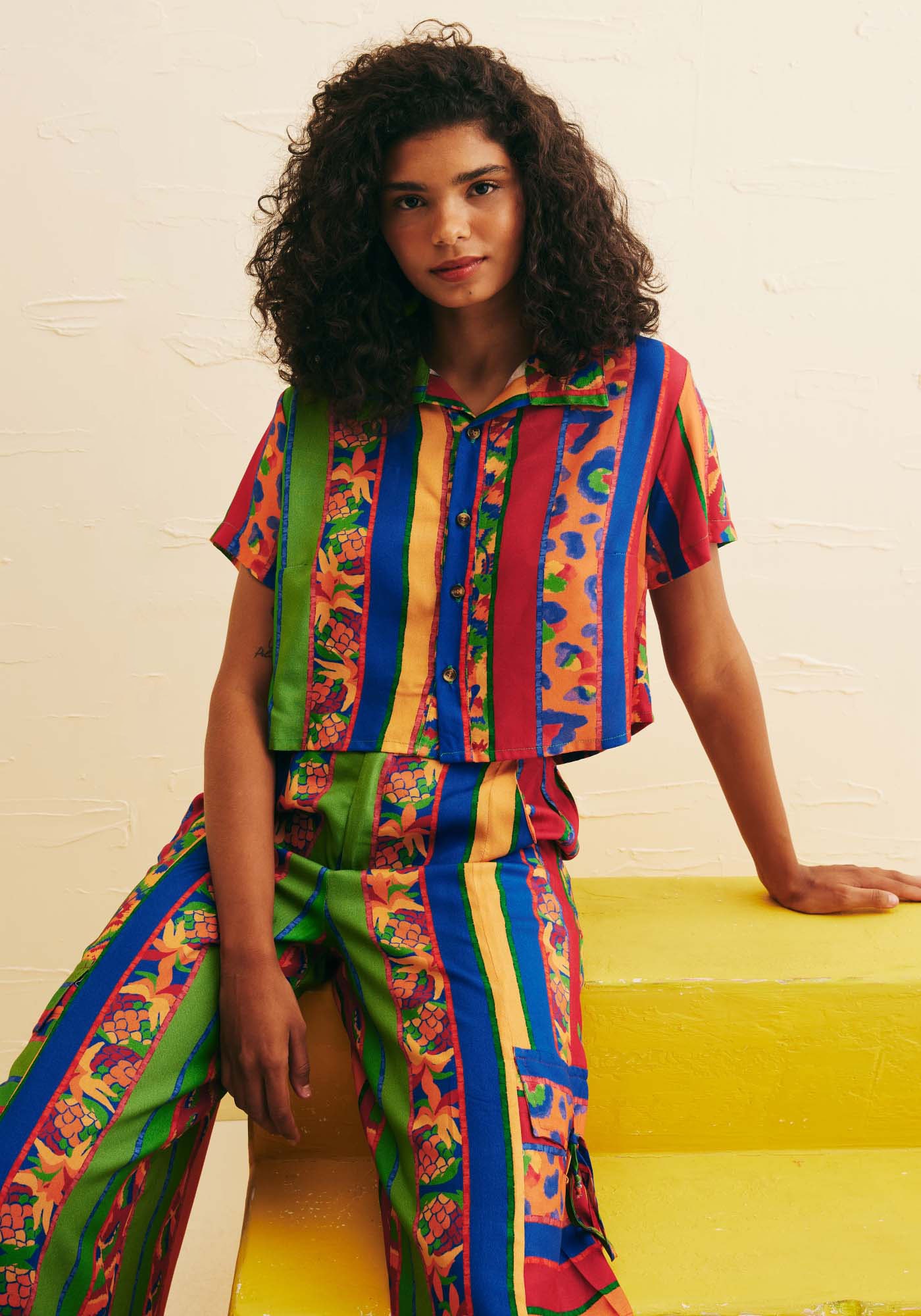 Elaborada num tecido de 100%viscose com a nossa charmosa estampa Caminito, a Camisa Cropped Botões trazpara o seu guarda-roupa um toque de alegria e descontração. Seu comprimentomais curto contribui em torná-la mais casual, enquanto sua gola traz maissofisticação à peça. Seus tons vibrantes e divertidos trazem um ar tropical, enquanto sua modelagem mais ampla e curta e seu tecidoajudam a contribuir para o frescor.
