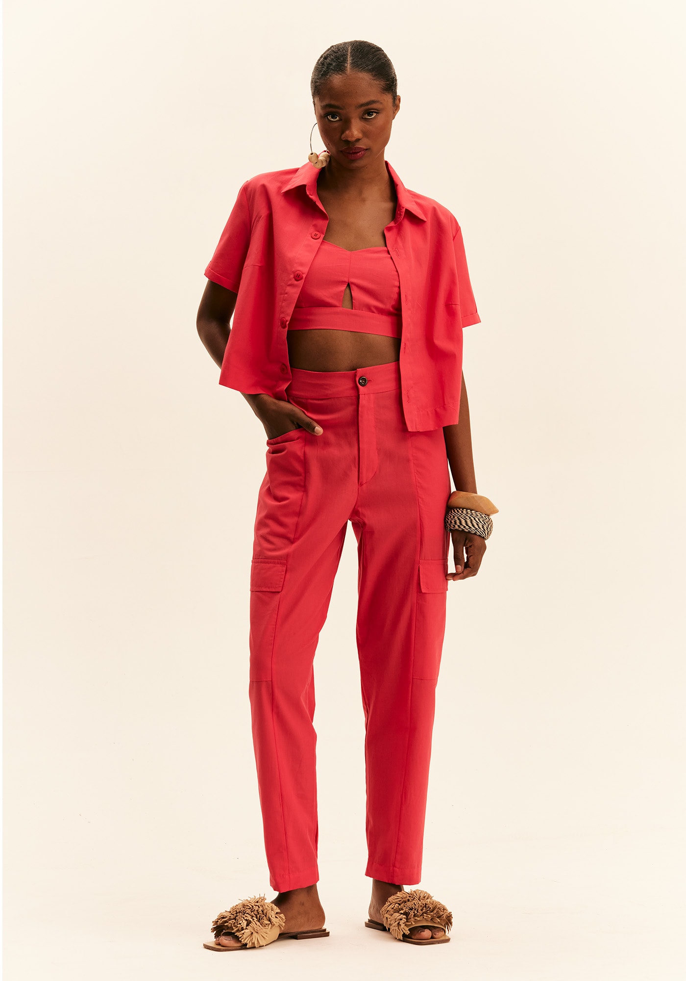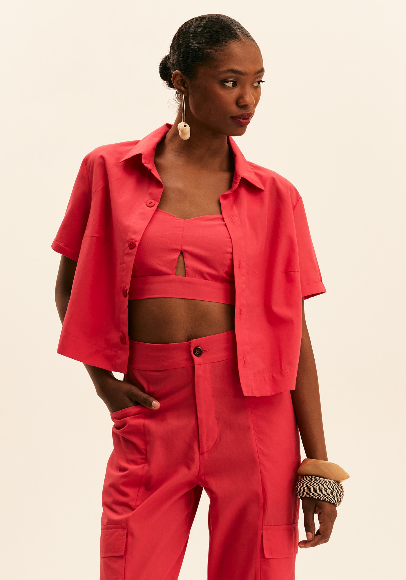 A camisa cropped é uma peça super versátil. Confeccionada em tecido 100% algodão, esse modelo mais curtinho pode ser usado como terceira peça ou como parte de cima na hora de montar o look.