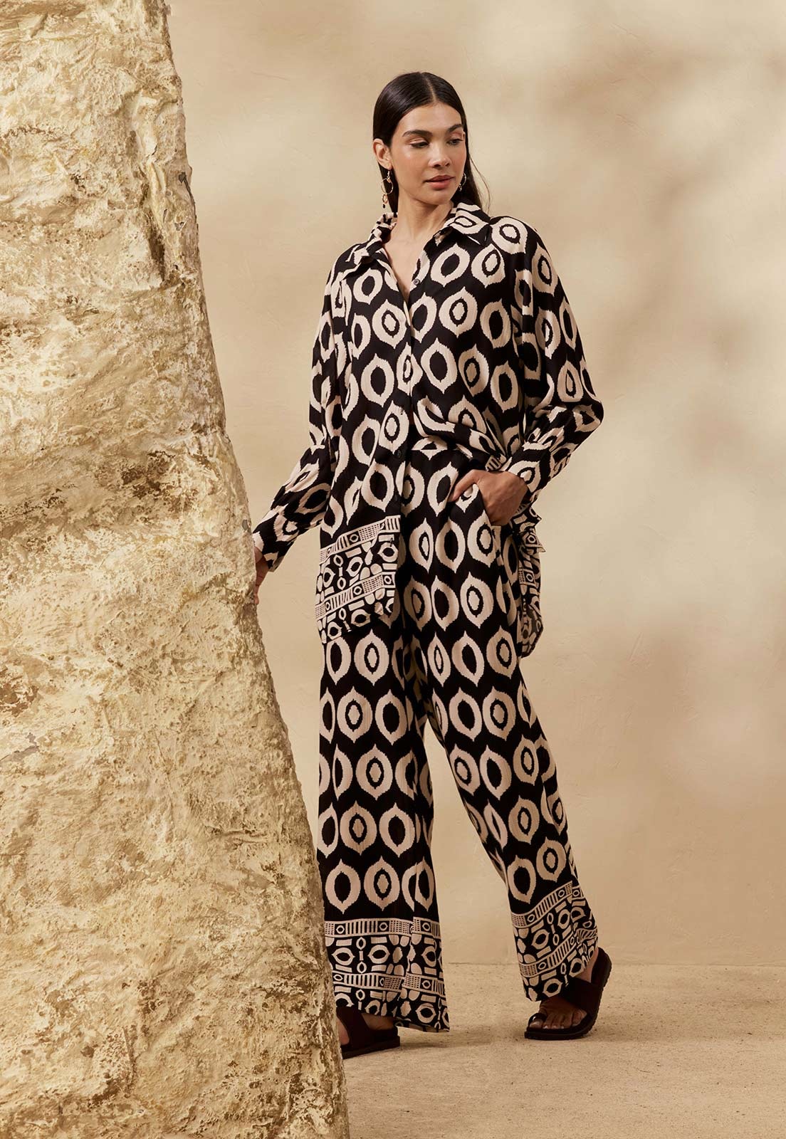 A Camisa Estampada Cacau Peruano da CaCay tem modelagem reta e solta, com caimento leve que acompanha o corpo sem marcar, mantendo comprimento confortável para diferentes silhuetas. A forma é grande, então se estiver em dúvida entre dois tamanhos, opte pelo menor e consulte a tabela de medidas para precisão. Na foto, a modelo tem 1,75m de altura, veste manequim 36 e usa o tamanho P.Confeccionada em 100% viscose, o tecido é fresco, sem elasticidade, e garante bem-estar mesmo em uso prolongado. Versátil, transita com elegância entre o dia a dia, momentos casuais e produções de trabalho, valorizando o estilo com estampa geométrica de inspiração artesanal. Combine com calças de alfaiataria, sandálias leves ou acessórios marcantes para criar composições que equilibram conforto e sofisticação.