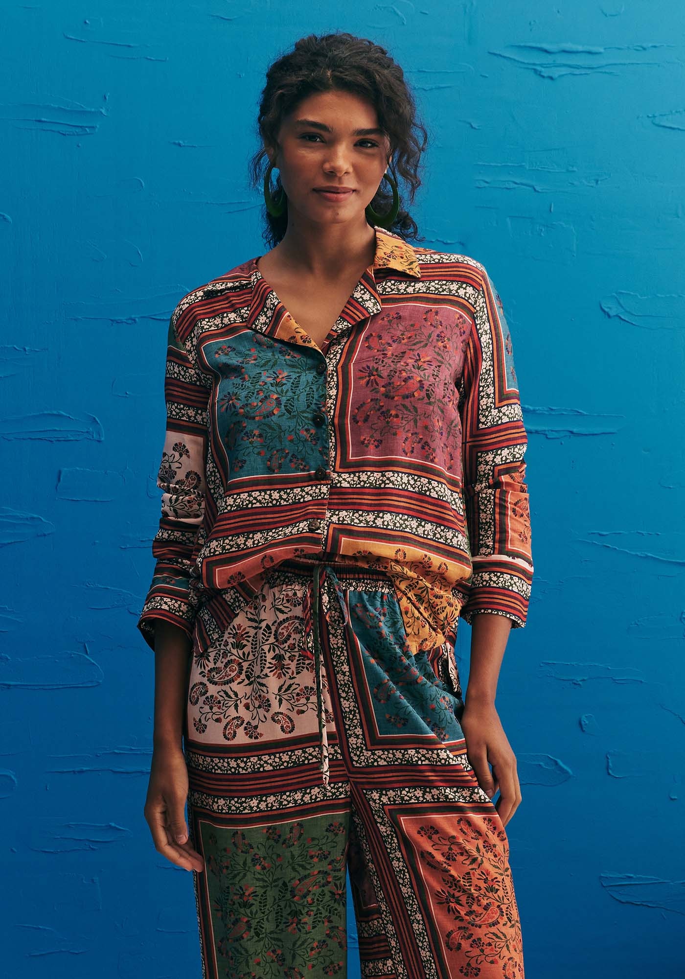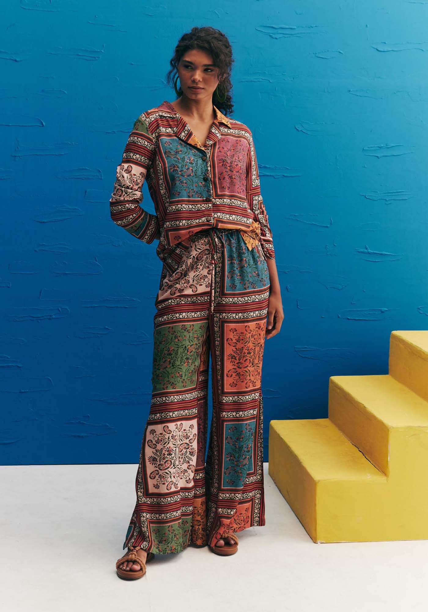 A camisa é um modelo sofisticado e versátil. Confeccionadoem tecido 100% viscose, o modelo estampado possui manga longa e gola, além doabotoamento frontal. É uma peça elegante, que adiciona um toque especial no look.