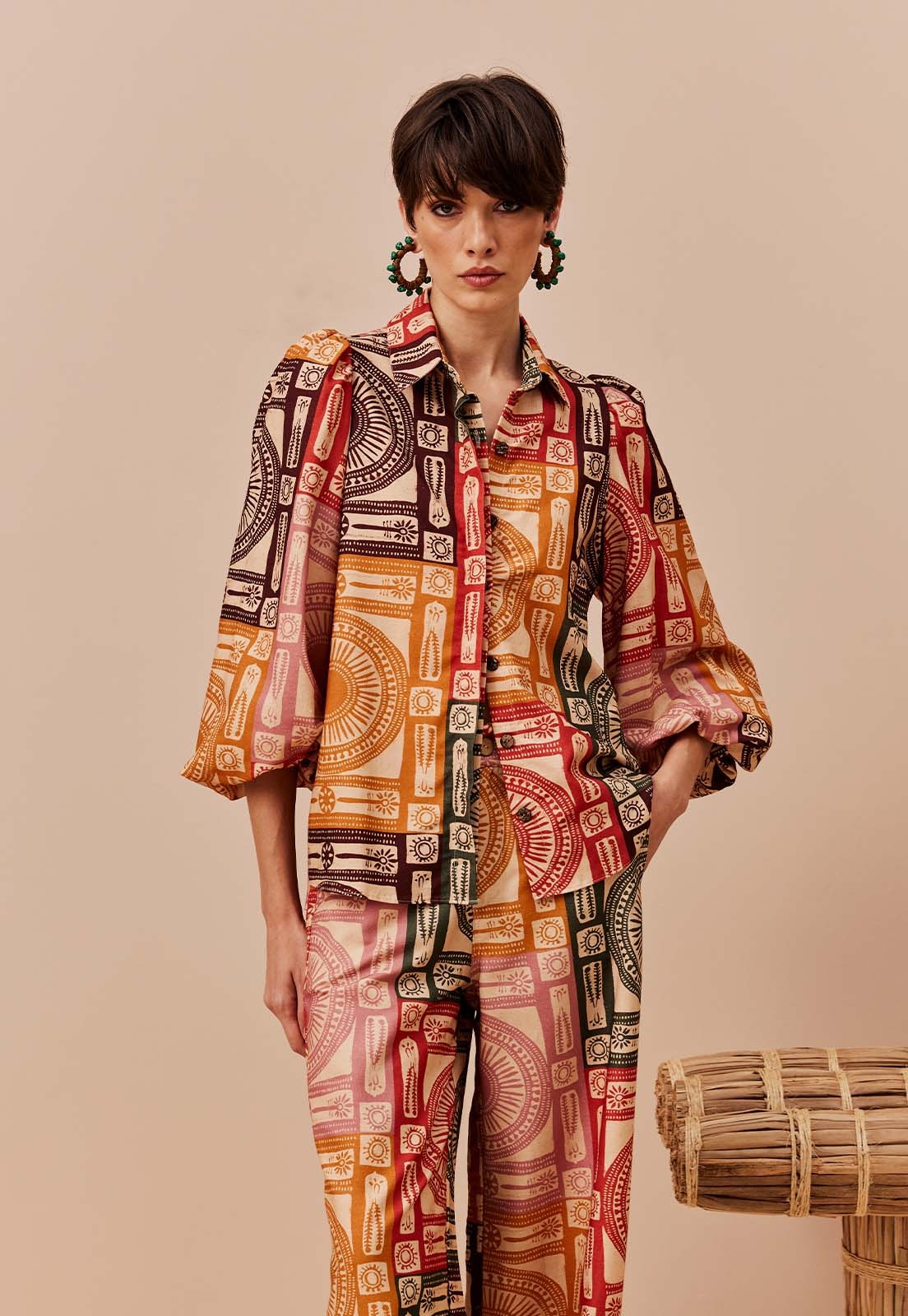 A blusa estampada Los Andes é confeccionada em tecido 70% algodão e 30% viscose. O modelo com manga bufante e abotoamento na parte da frente é elegante, perfeito para um look mais sofisticado.