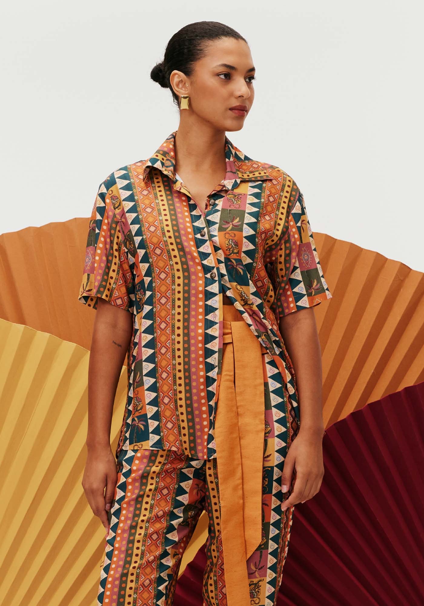 Modelo versátil e unissex, camisacom manga curta pode ser usada em diferentes ocasiões em combinações. Confeccionadaem tecido 100% viscose, possui abotoamento frontal e manga curta. Pode serusada aberta, como um kimono, ou fechada como parte de cima na hora de compor olook.