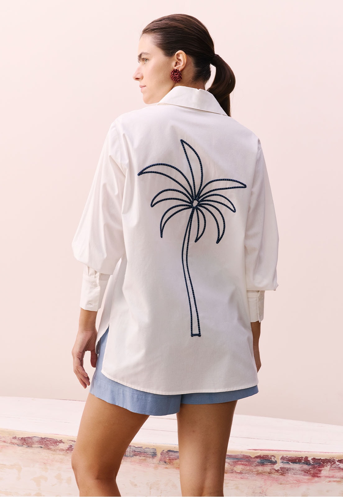 O bordado nas costas traz um toque artesanal e exclusivo, reforçando a identidade da CaCay. A modelo da foto tem 1,77m e veste tamanho P, proporcionando uma referência real de proporção. Ideal para quem busca peças versáteis e com personalidade, essa camisa oversize é perfeita para compor looks casuais com elegância. Pode ser usada aberta como terceira peça ou fechada para um visual mais estruturado.