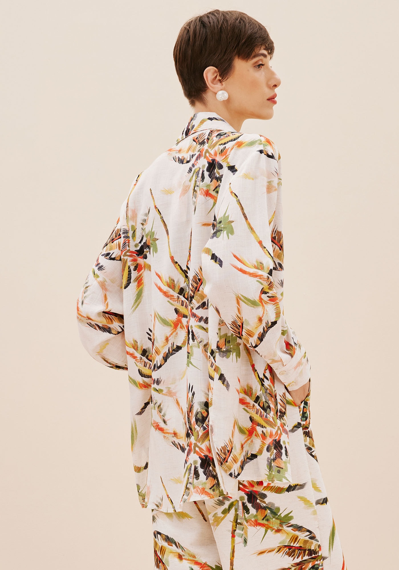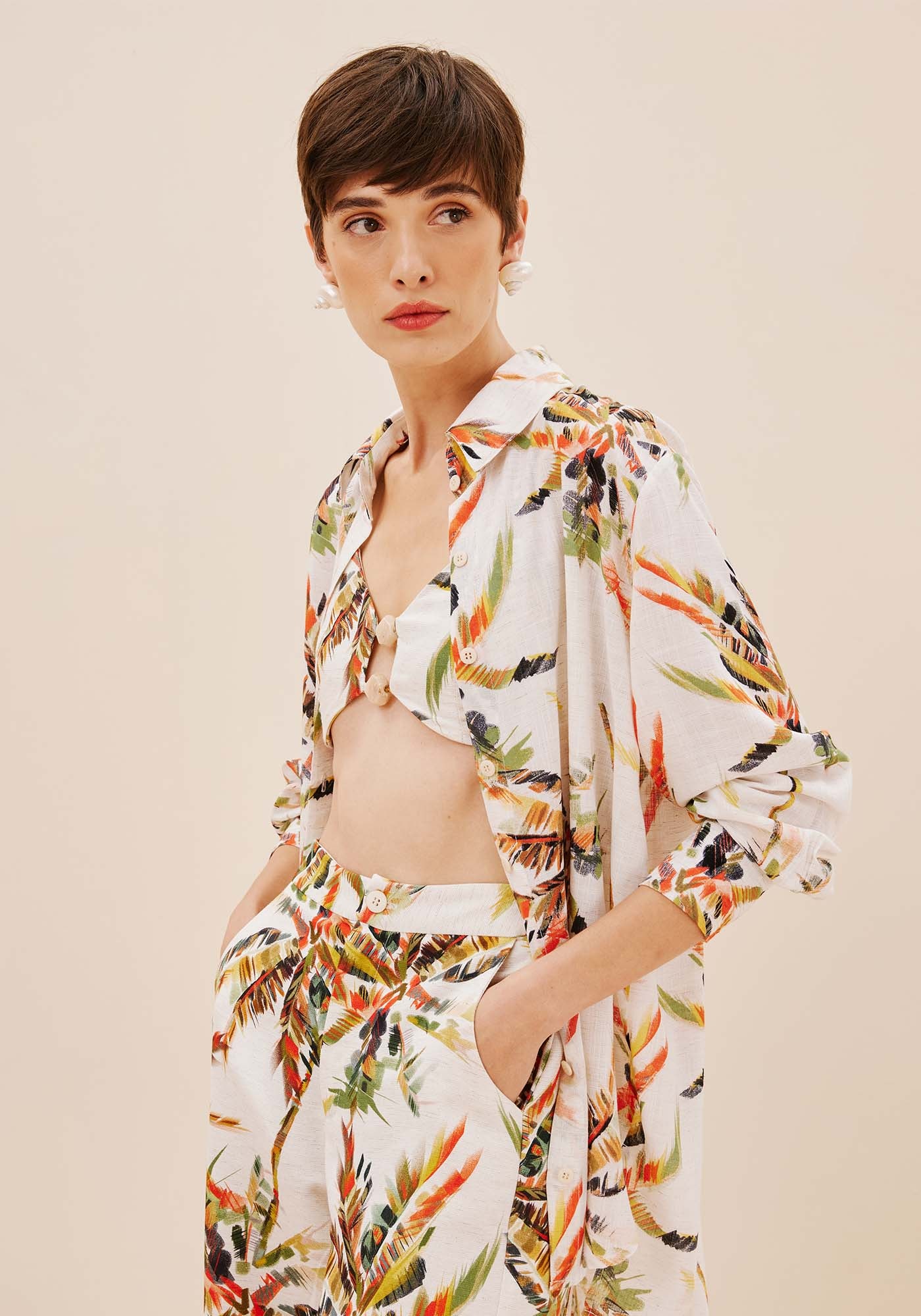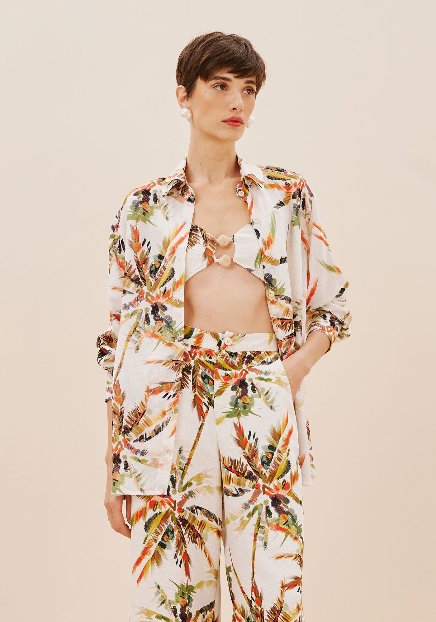 Confeccionadaem tecido 96% viscose 4% algodão, a camisa oversized estampada Itapuã é ummodelo sofisticado e versátil. O modelo possui manga longa e abotoamento frontale pode ser usada em diferentes ocasiões, principalmente em combinações comoutras peças da coleção.