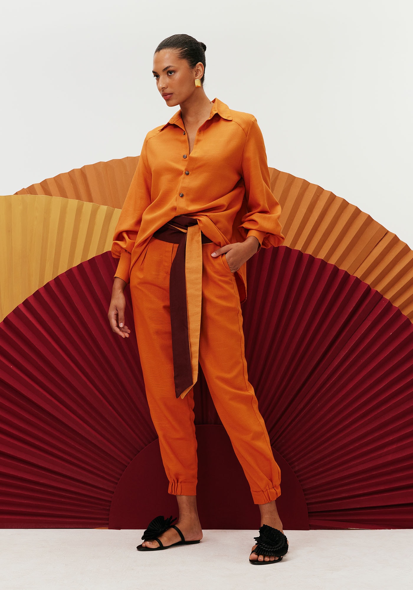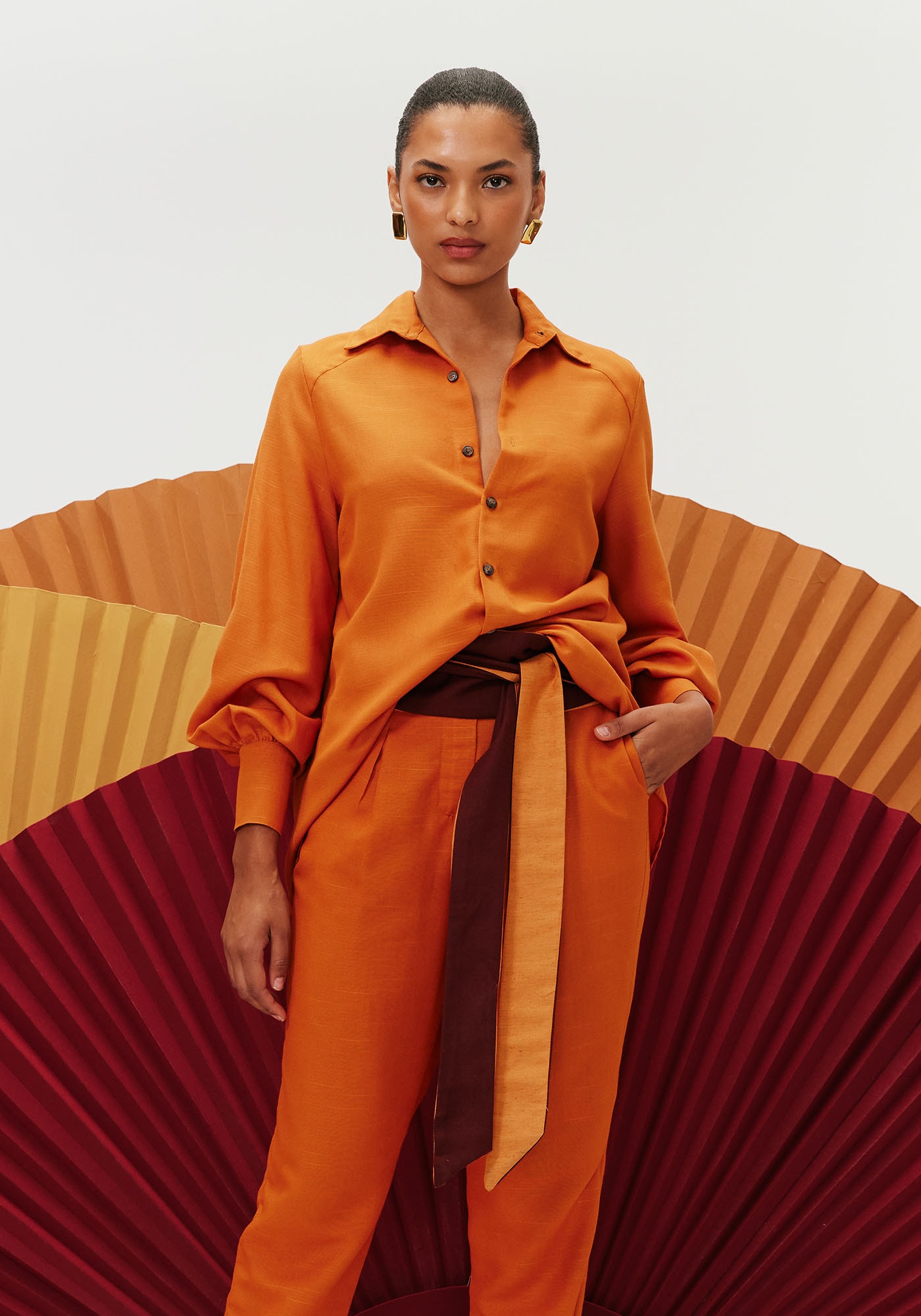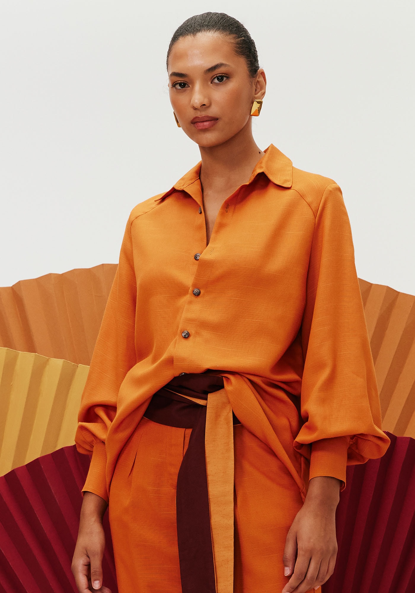 A camisa social é uma peça que nãopode faltar no armário. Modelo clássico, é confeccionado em tecido 61% viscosee 39% algodão e possui fechamento frontal com botões. A manga mais justa no punhotambém possui abotoamento.