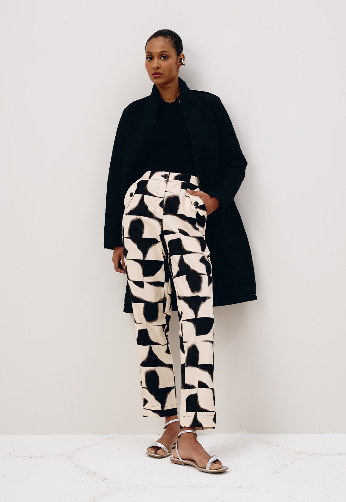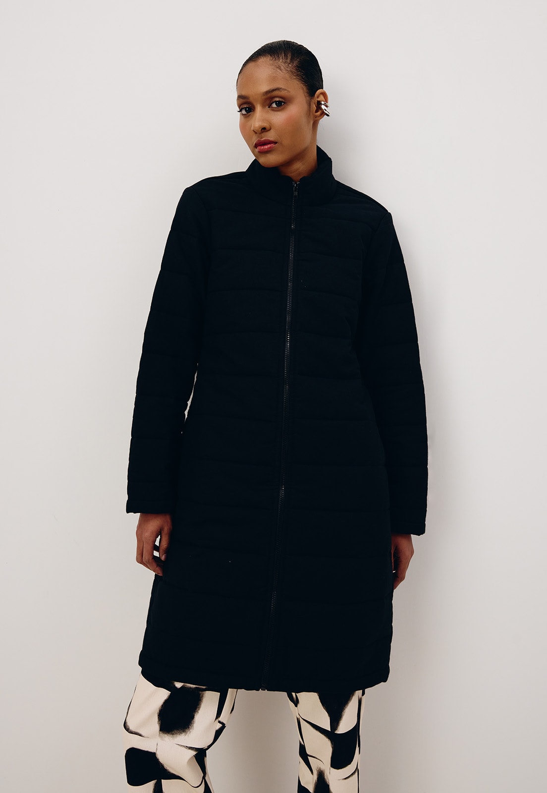 O casaco da coleção de Alto Inverno 25 é confeccionado em tecido 100% algodão. É um modelo puffer alongado, bem aconchegante e confortável, perfeito para dias mais frios. Além disso, possui detalhe em matelassê em todo o seu comprimento.O fechamento em zíper na parte da frente é fácil e prático.