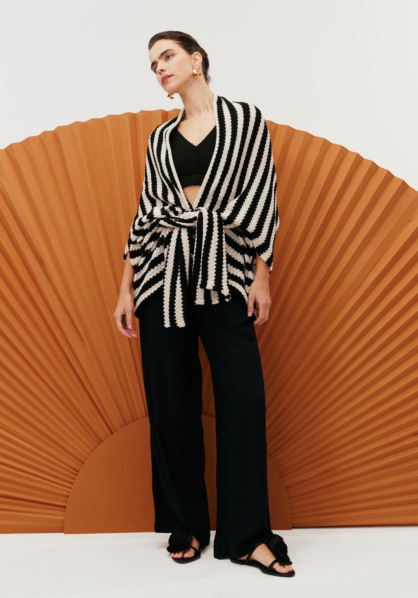 O casaco casulo traz o charme e a sofisticaçãoque os dias frios pedem. Quentinho e confortável, é um modelo versátil, quepode ser usado tanto aberto, como amarrado na cintura.