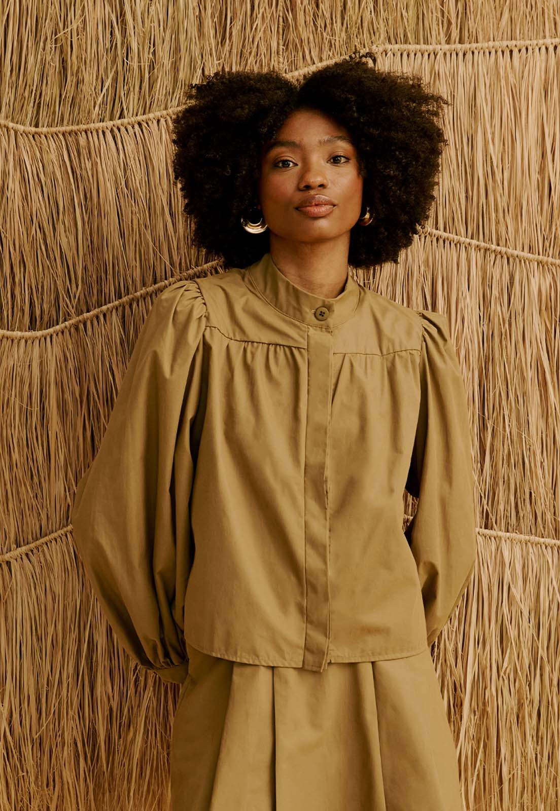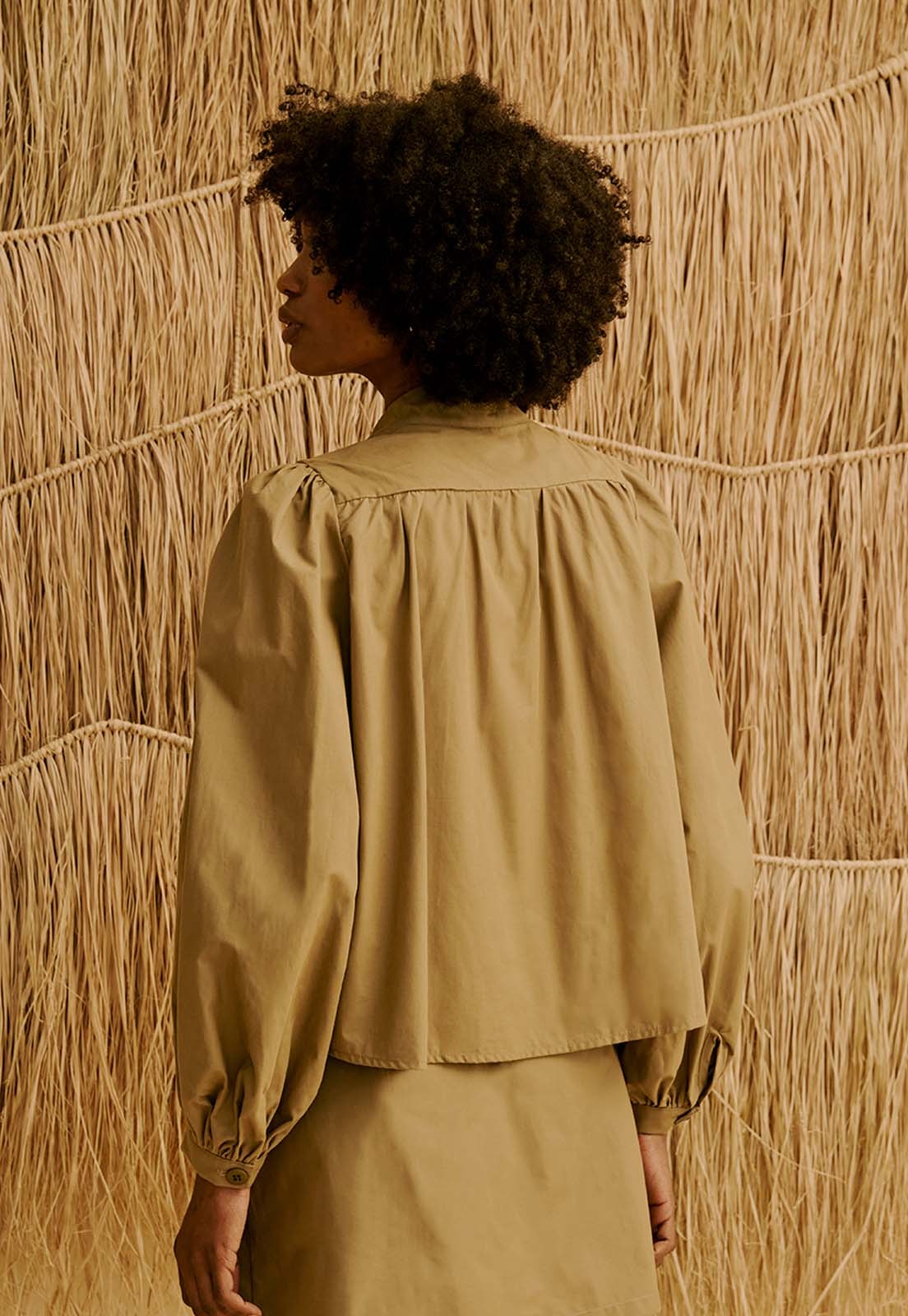 Confeccionado em 100% algodão, o tecido é leve, sem elasticidade e sem transparência, garantindo conforto prolongado e bem-estar ao longo do dia. A peça transita com naturalidade entre ocasiões casuais, trabalho ou encontros sociais, mantendo um estilo atemporal. O franzido e o detalhe das mangas bufantes adicionam sofisticação sem perder a praticidade. Combine com brincos marcantes, uma bolsa estruturada ou calçados minimalistas para criar looks que equilibram elegância e autenticidade.
