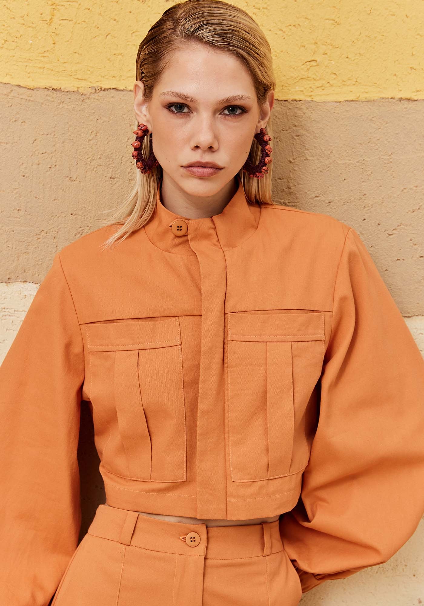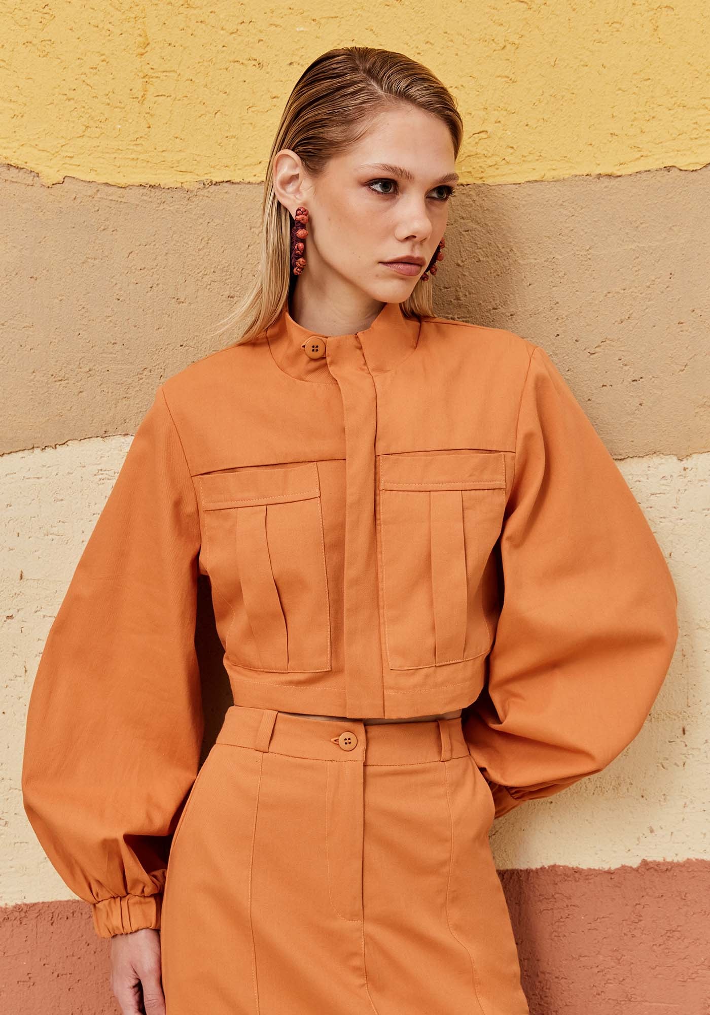 O Casaco Manga Bufante CaCay é a escolha ideal para quem busca estilo com personalidade e conforto absoluto. Com design cropped e mangas volumosas ajustadas por elástico nos punhos, ele une sofisticação e leveza em uma silhueta moderna. Os bolsos frontais com abas e pregas verticais adicionam textura e funcionalidade, enquanto o fechamento com botões ocultos sob uma aba de tecido garante um visual limpo e elegante. O colarinho alto com botão central reforça o acabamento refinado da peça, feita em 100% algodão, garantindo toque suave e respirabilidade para o dia a dia.