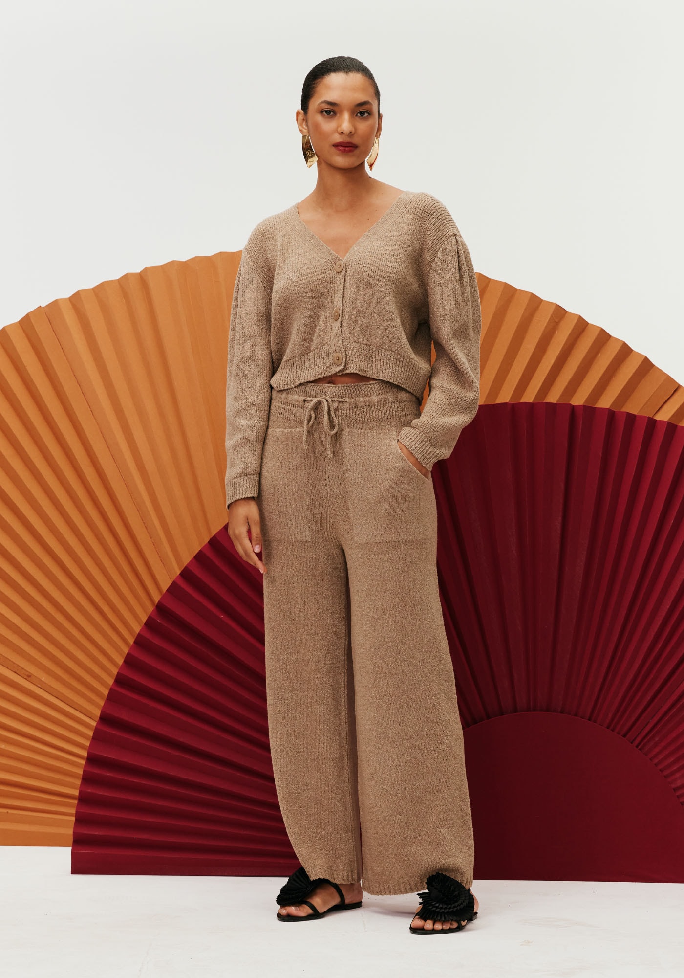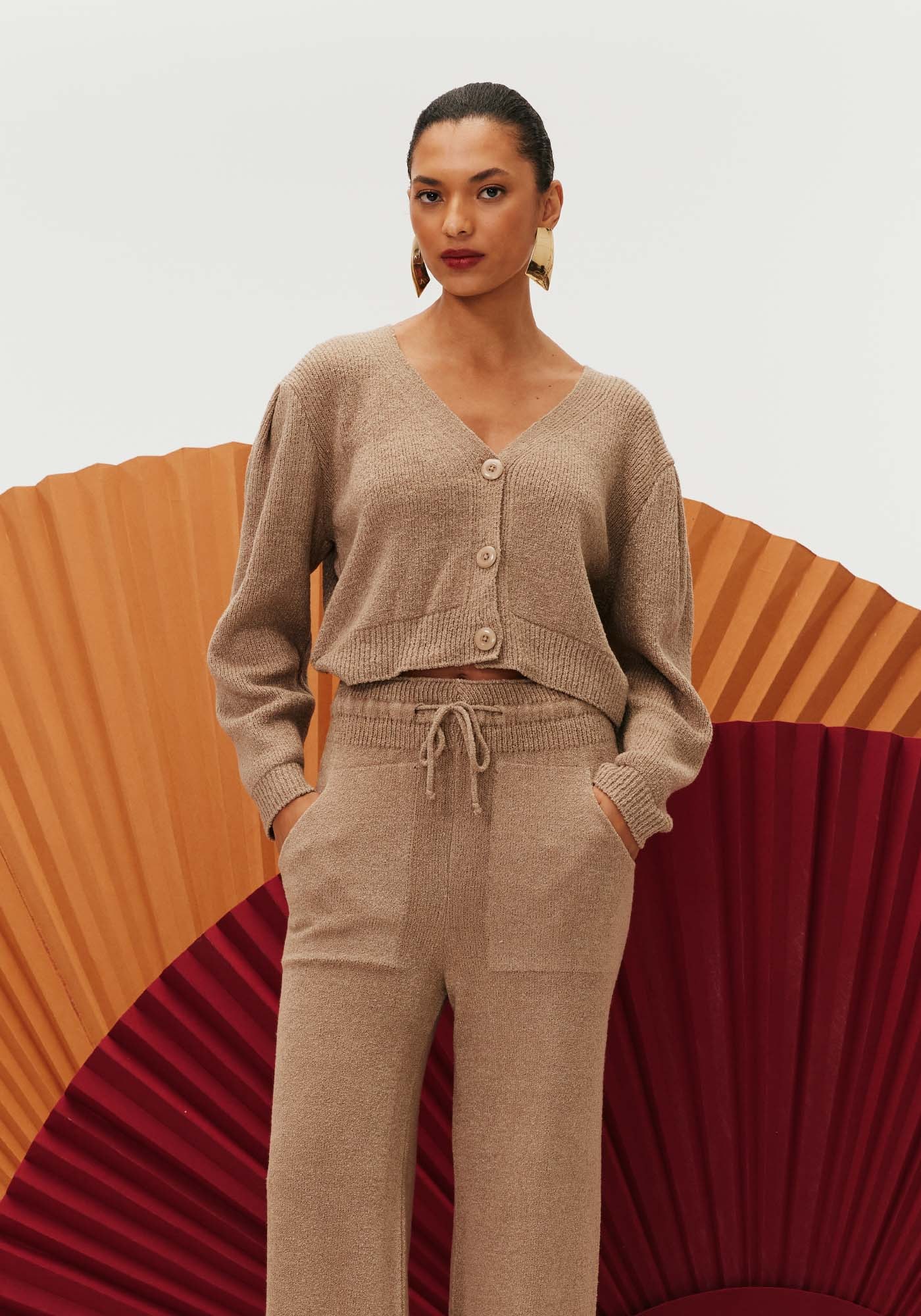 O casaco de tricot é umapeça que transborda conforto e estilo. O modelo possui abotoamento frontal ecomprimento cropped e é perfeito para um clima mais invernal.