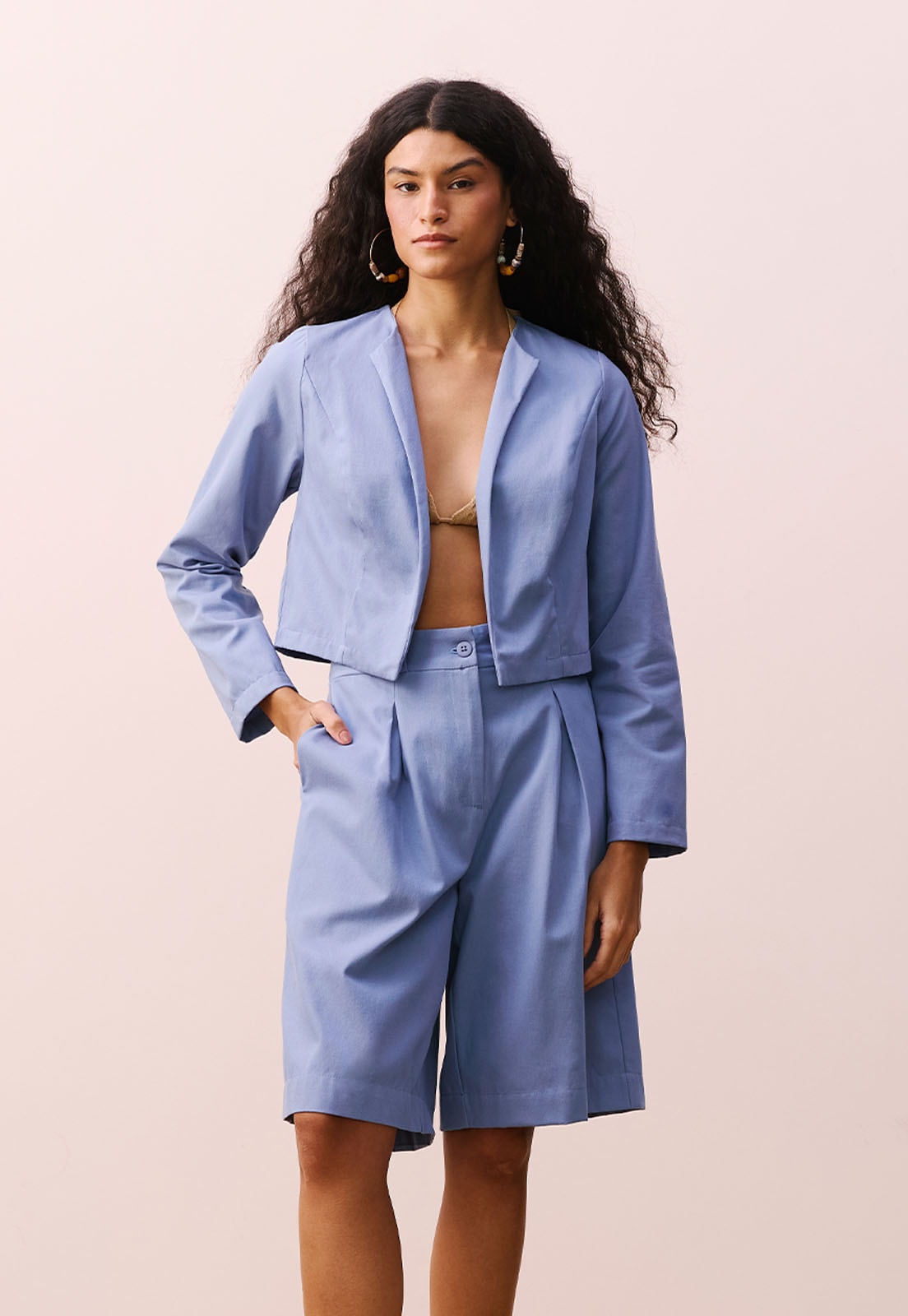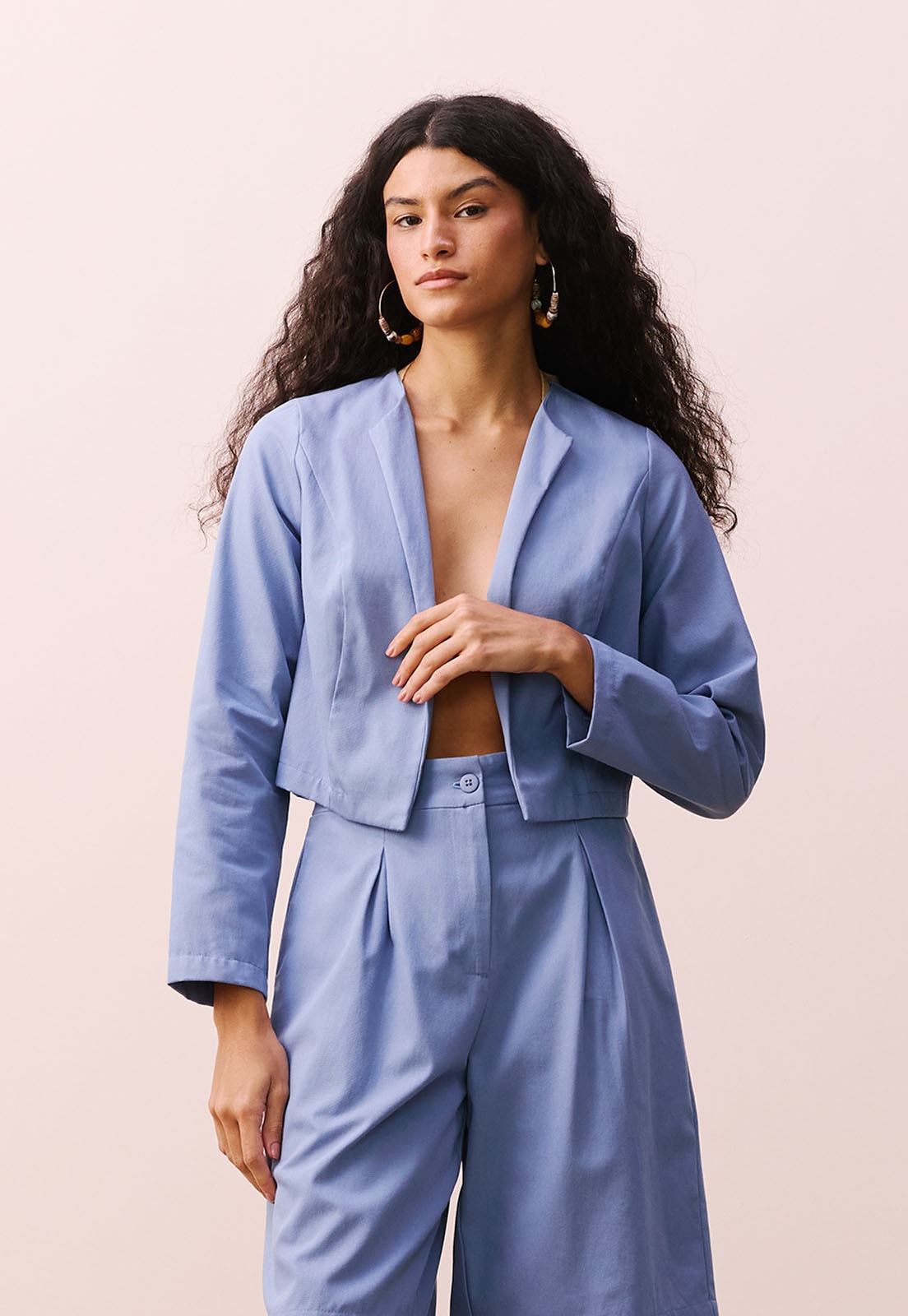 O Casaqueto Cropped Alfaiataria CaCay é a escolha ideal para quem busca sofisticação com um toque contemporâneo. Com modelagem estruturada e comprimento que valoriza a cintura, essa peça em 100% algodão oferece caimento impecável e conforto natural ao toque. A lapela fina e o design minimalista sem botões visíveis reforçam a elegância atemporal da alfaiataria moderna. Versátil, transita com facilidade entre o look de trabalho e produções mais casuais ou noturnas, sempre com presença marcante.