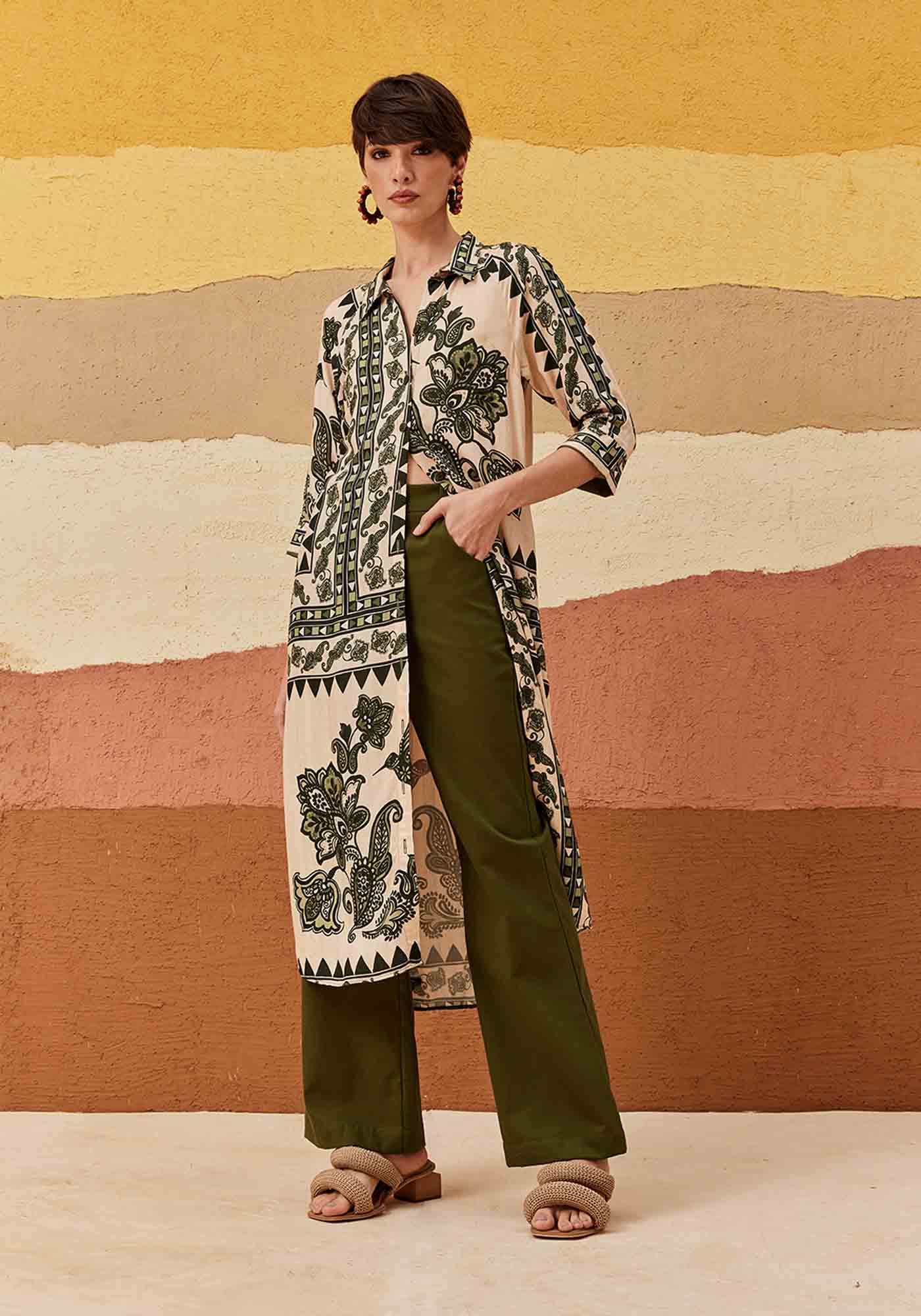 A Chemise Regular Tecido Estampada é a escolha perfeita para quem busca sofisticação com um toque moderno. Com modelagem alongada e mangas ¾, ela oferece um caimento elegante e confortável. O abotoamento frontal garante praticidade, enquanto a estampa exclusiva "Bodegas", disponível nas combinações de bege e verde ou bege e vermelho, traz um ar descontraído e contemporâneo à peça. Confeccionada em 96% Viscose e 3% Linho, a Chemise é perfeita para ocasiões informais, mas com aquele charme extra que transforma qualquer visual.