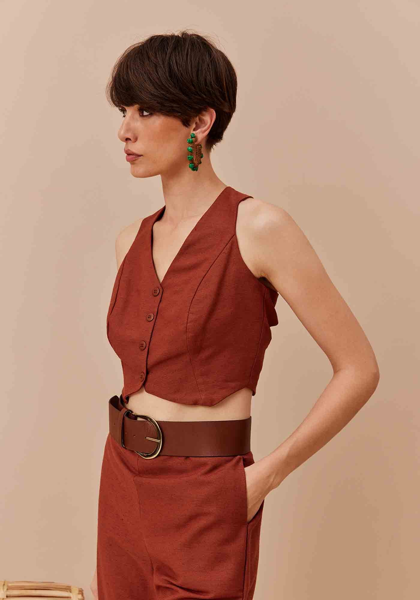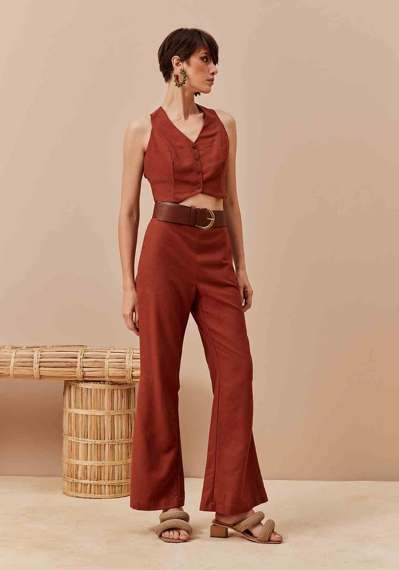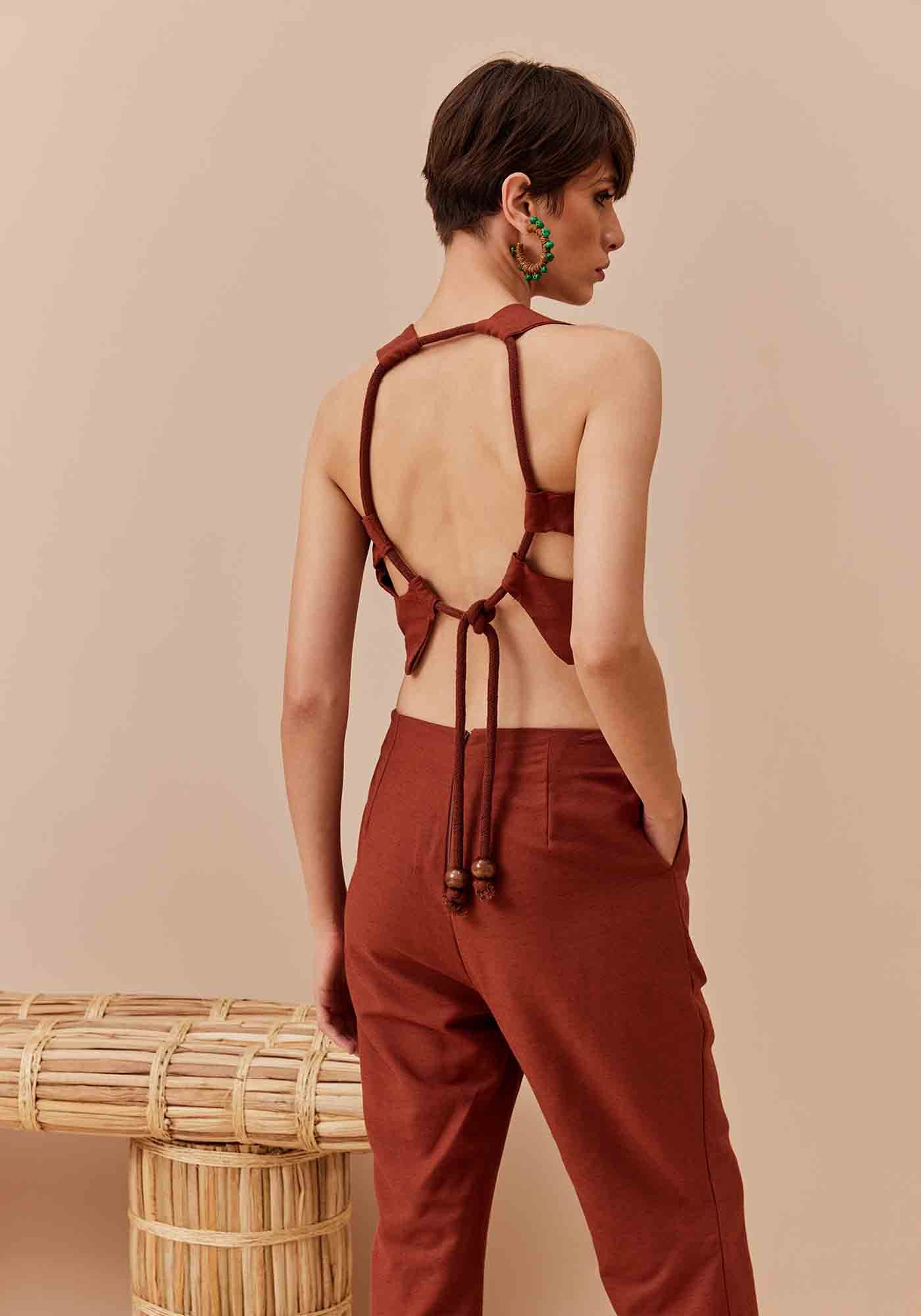 Ocolete liso é uma peça super estilosa. Confeccionado em tecido 42% algodão 38%viscose 15% modal 6% linho, pode ser usado em conjuntinho ou combinado com outraspeças da coleção. Possui botões na parte da frente e um decote belíssimo nascostas com amarração em corda e finalização com ponteiras.