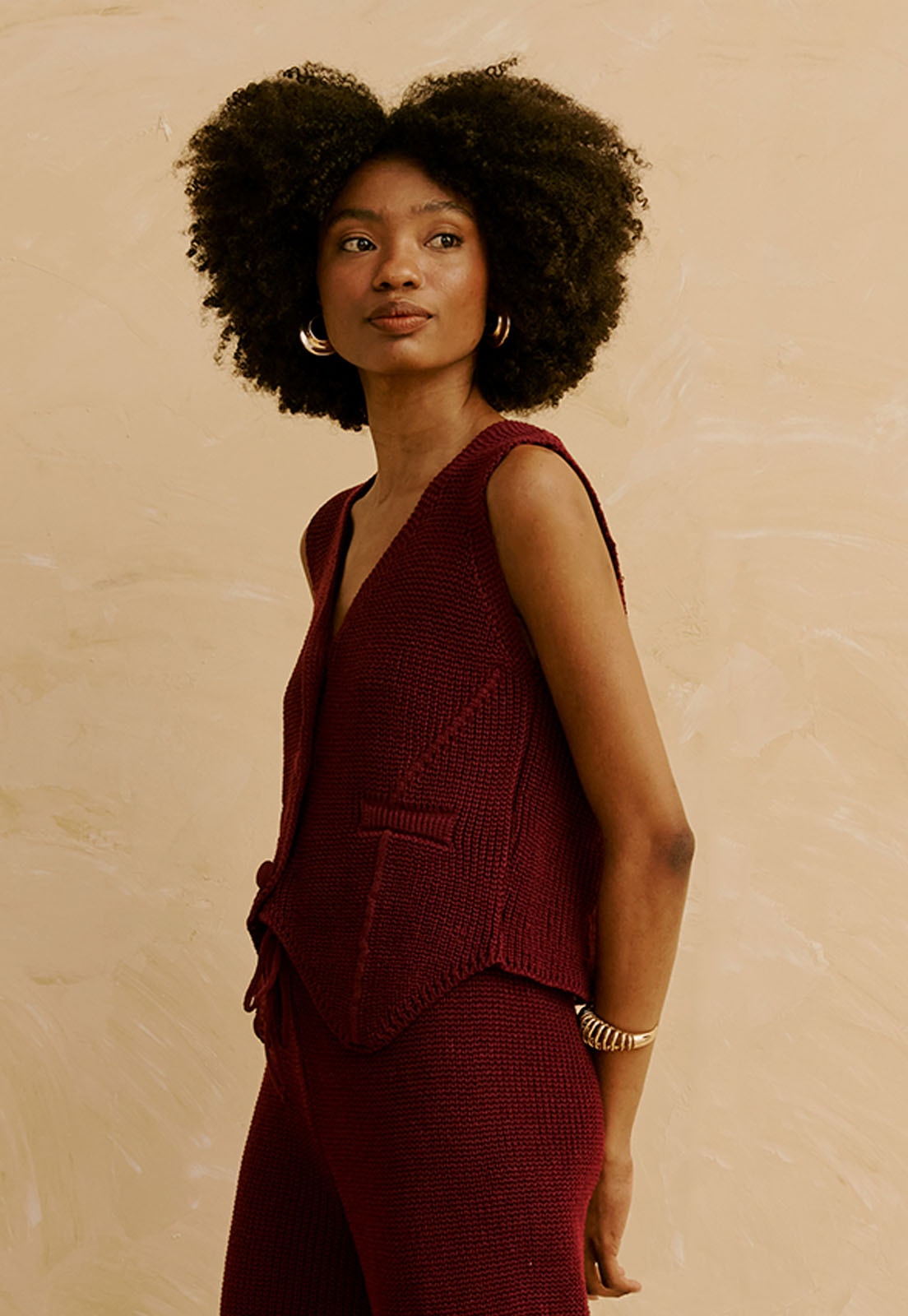 Confeccionado em tricot de textura marcante, o tecido possui elasticidade moderada, oferecendo conforto prolongado e liberdade de movimento. Atemporal e versátil, o colete transita bem entre produções casuais, momentos de trabalho ou encontros descontraídos. Combine com acessórios delicados, calças de alfaiataria ou shorts de mesma proposta para criar composições sofisticadas e práticas.