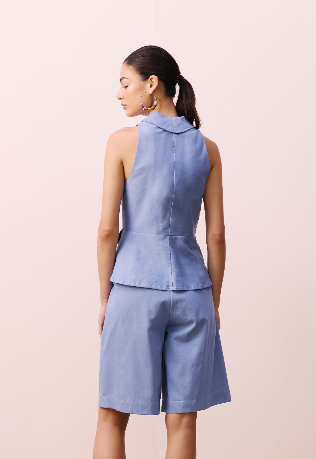 Combine com calças de alfaiataria, saias midi ou bermudas de corte reto para composições modernas e equilibradas. A modelo tem 1,77m e veste tamanho P, evidenciando o ajuste impecável da peça. Ideal para quem valoriza moda consciente e funcional, o Colete Gola Blazer CaCay é aquele item-chave que transforma qualquer look.