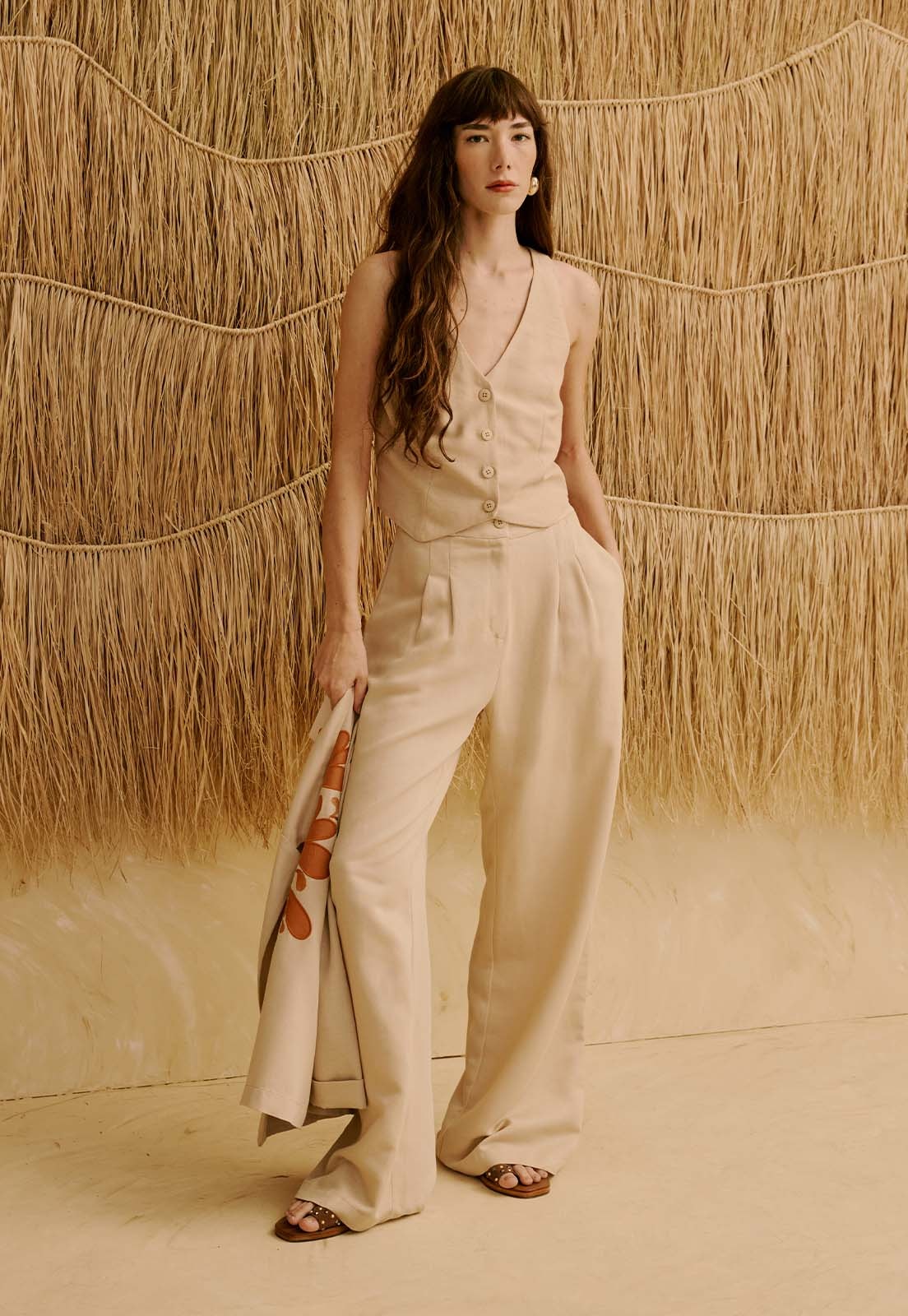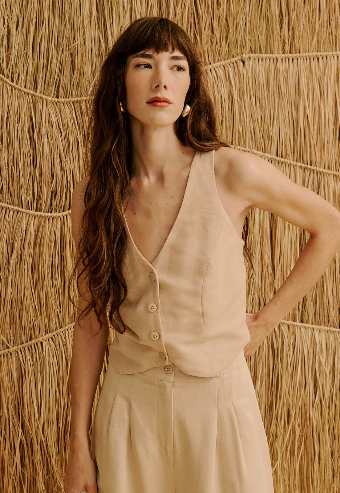 O Colete Liso Cruzado Costas da CaCay apresenta modelagem sofisticada e contemporânea, com caimento que valoriza o busto e traz leve ajuste na cintura, mantendo fluidez e comprimento alinhado ao corpo. A forma é grande, por isso, se estiver em dúvida entre dois tamanhos, escolha o menor e consulte a tabela de medidas para precisão. Na foto, a modelo tem 1,75m, veste manequim 36 e está usando o tamanho P.