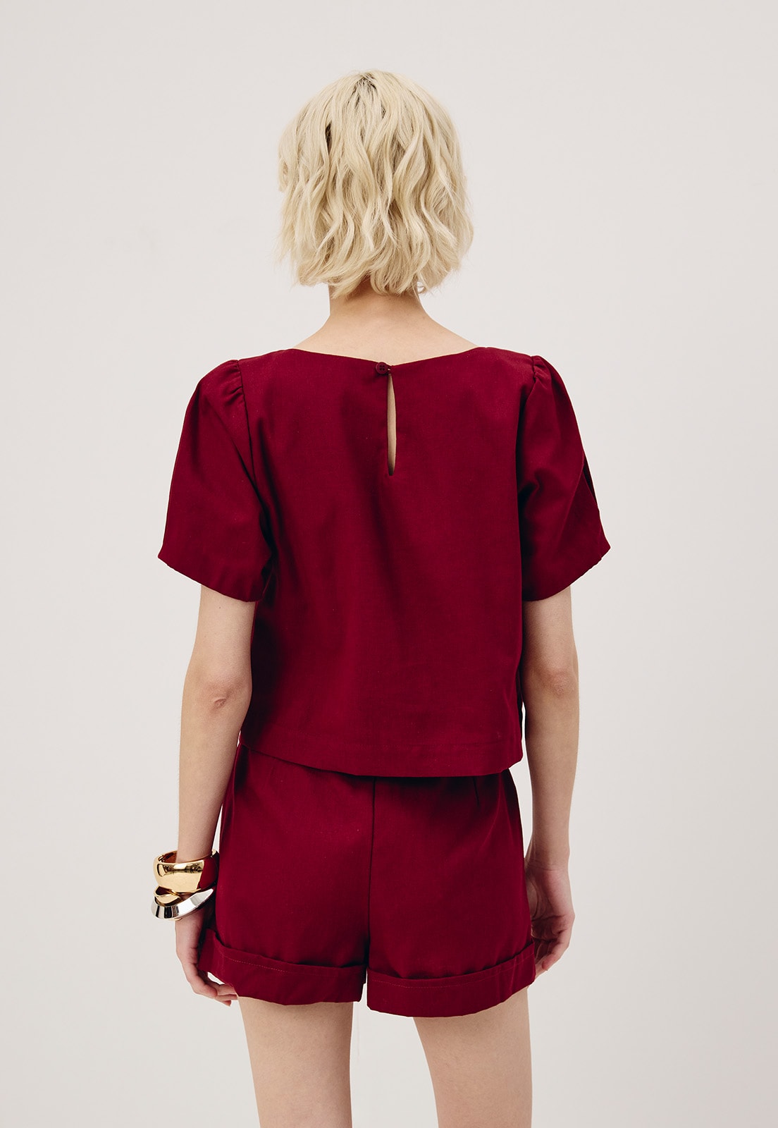 O cropped é confeccionado em tecido 100% algodão.A peça possuimodelagem alongada e manga curta com prega, sendo um modelo básico e versátil, que pode ser combinado com diversos tipos de looks de ocasiões.