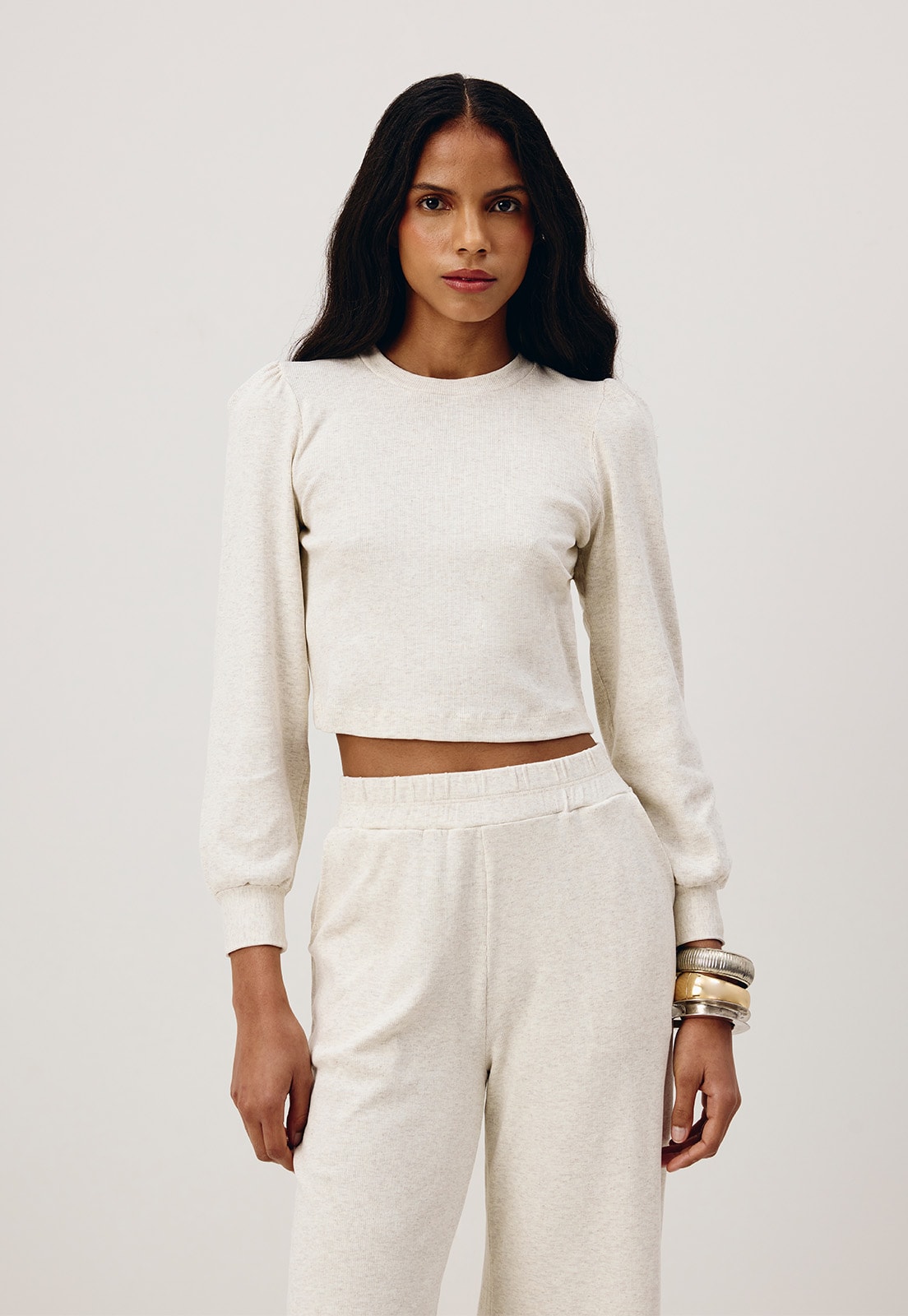 O cropped com manga longa é confeccionado em tecido 95% viscose 5% elastano. É um modelo alongado, despojado e confortável, estilo aerolook e perfeito para o inverno.