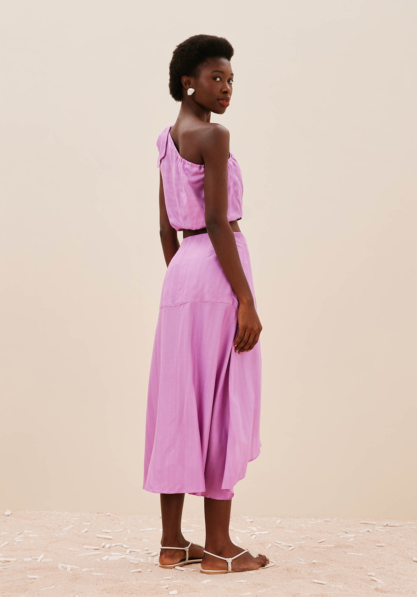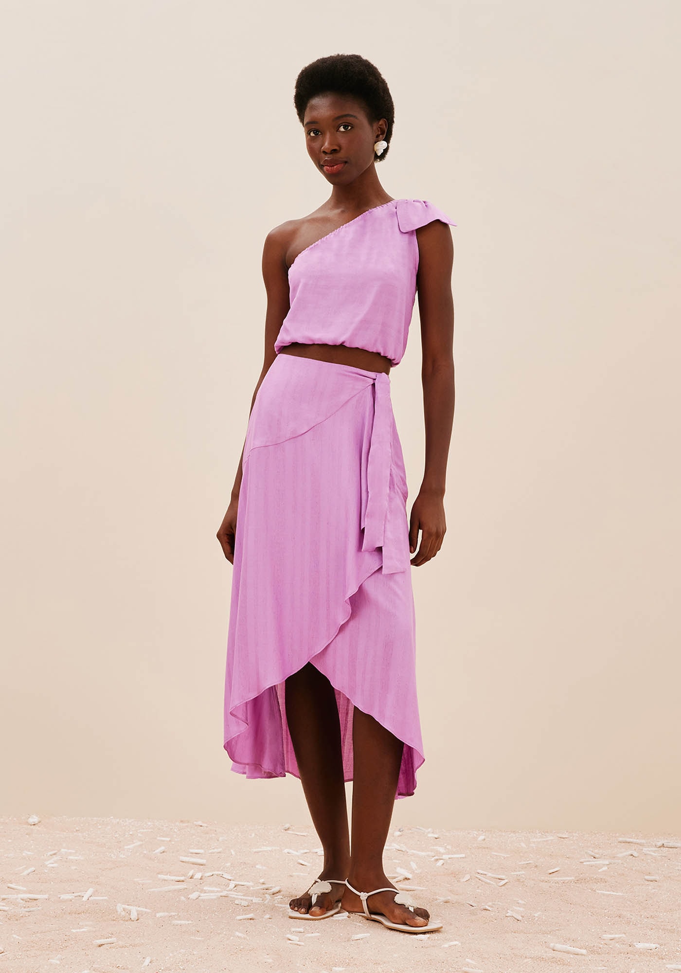 O cropped alongado é confeccionado em tecido 97%viscose e 3% linho. Modelo de um ombro só, possui o detalhe charmoso do laço eviés em elástico, ajustando-se perfeitamente ao corpo.