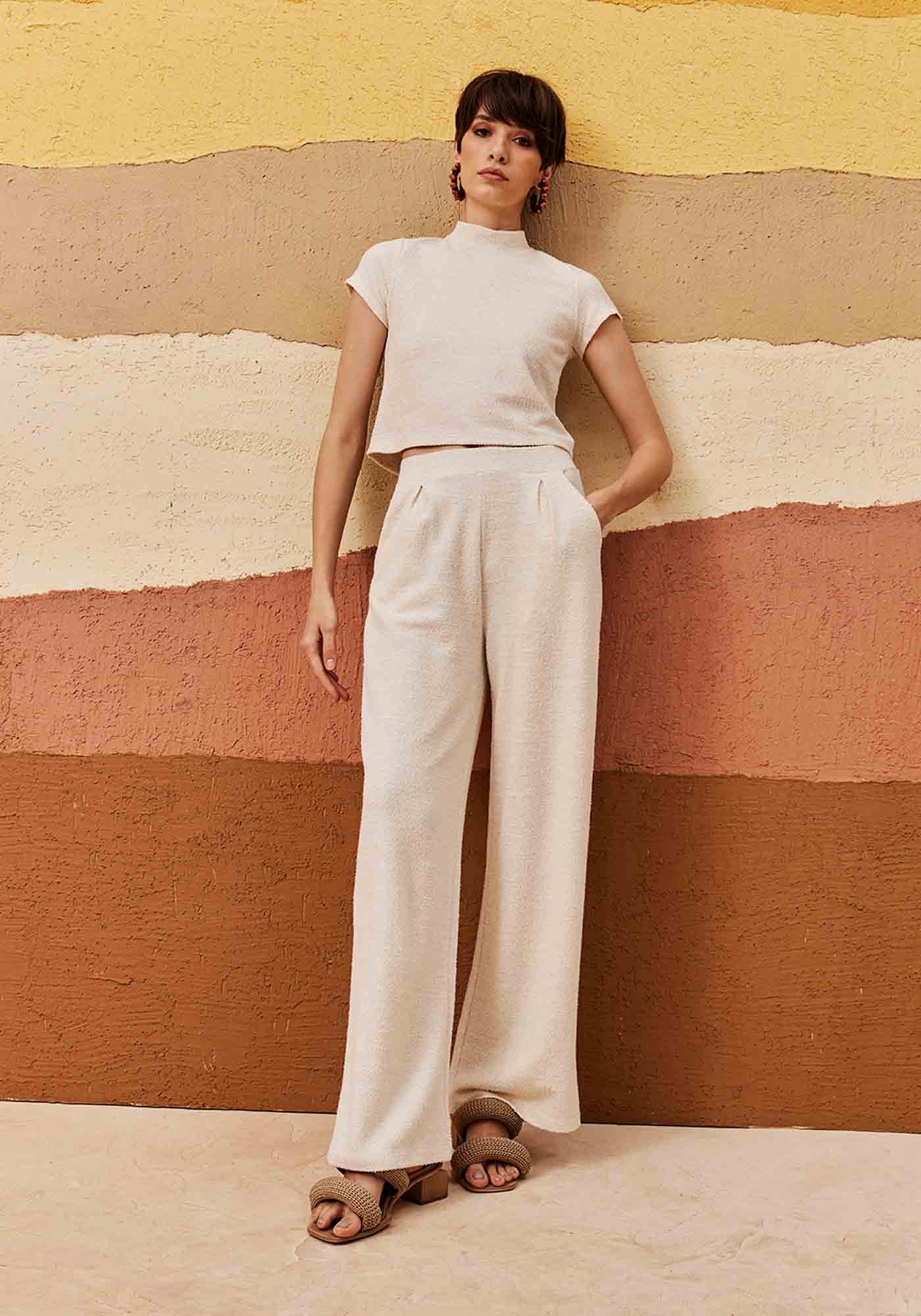 O cropped alongado de manga curta é uma peça-chave para quembusca praticidade com um toque de estilo. A gola alta e o fechamento em gotacom botão nas costas dão um charme ao design, enquanto o corte alongado traz umcaimento fluído e moderno. Feito com 54% algodão, 24% viscose, 15% poliéster,6% linho e 1% elastano, oferece um equilíbrio perfeito entre conforto, leveza eelasticidade, tornando-se ideal para diversas combinações no seu guarda-roupa.