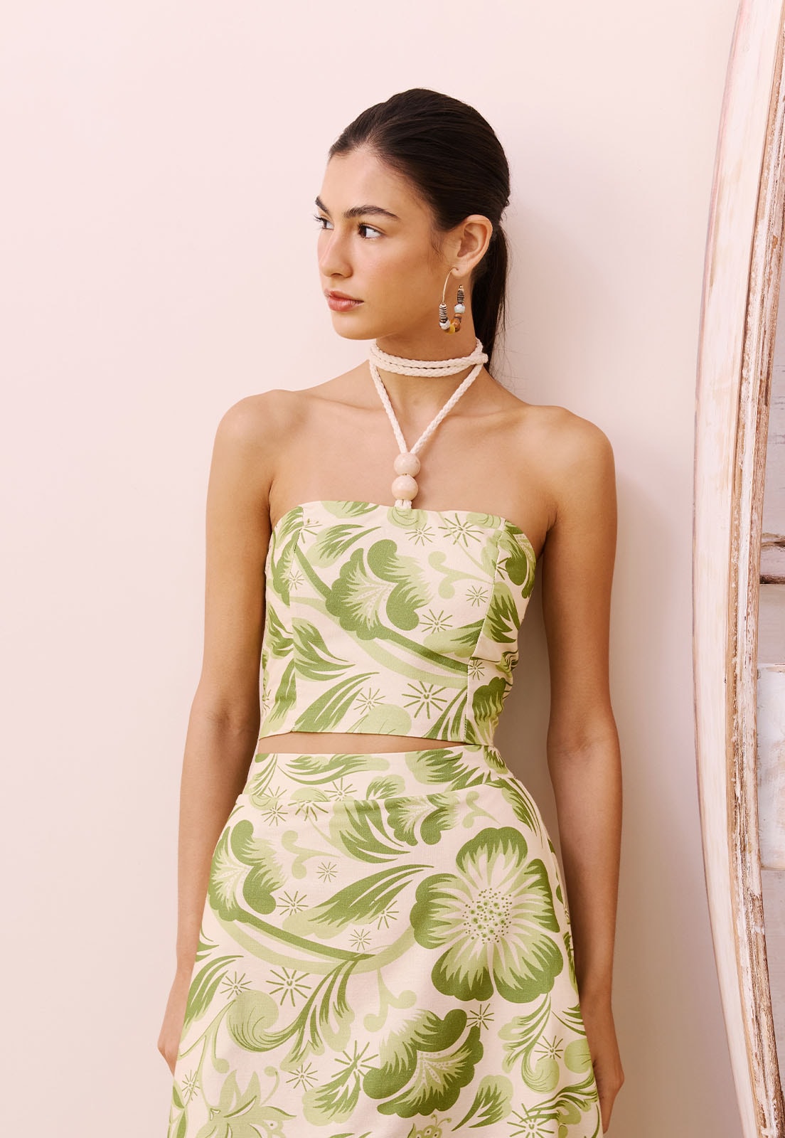 O Cropped Amarração Corda CaCay é a escolha perfeita para quem busca estilo com leveza e personalidade. Com design que valoriza o colo e as costas, o modelo traz amarração em corda no pescoço e detalhe smock nas costas, garantindo ajuste confortável e toque artesanal. A estampa com elementos orgânicos adiciona sofisticação ao visual, enquanto a composição em 70% algodão e 30% viscose proporciona frescor e caimento fluido, ideal para dias quentes ou ocasiões que pedem liberdade de movimento sem abrir mão da elegância.