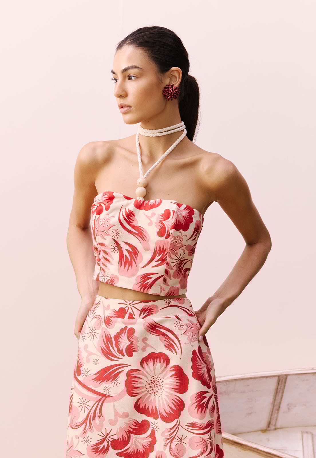 Versátil e atemporal, o cropped combina facilmente com peças de alfaiataria, saias fluidas ou jeans de cintura alta, além de acessórios naturais como bolsas de palha e sandálias de tiras. A modelo veste tamanho P e tem 1,77m de altura, evidenciando o caimento ajustado e confortável da peça. Seja para um passeio ao ar livre, um encontro casual ou uma produção mais elaborada, este cropped é a peça-chave que transforma qualquer look.